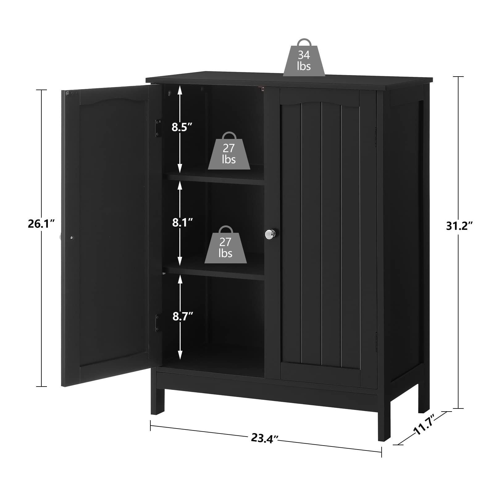 - Better Integrate Into Your Home eclectic, stylish and minimalist. No matter whatever your home style is, our bathroom cabinet will perfectly match well with it. Designed with aesthetics and functionality in mind, enjoy the striking contrast between the beautiful black finish and silvery knobs.