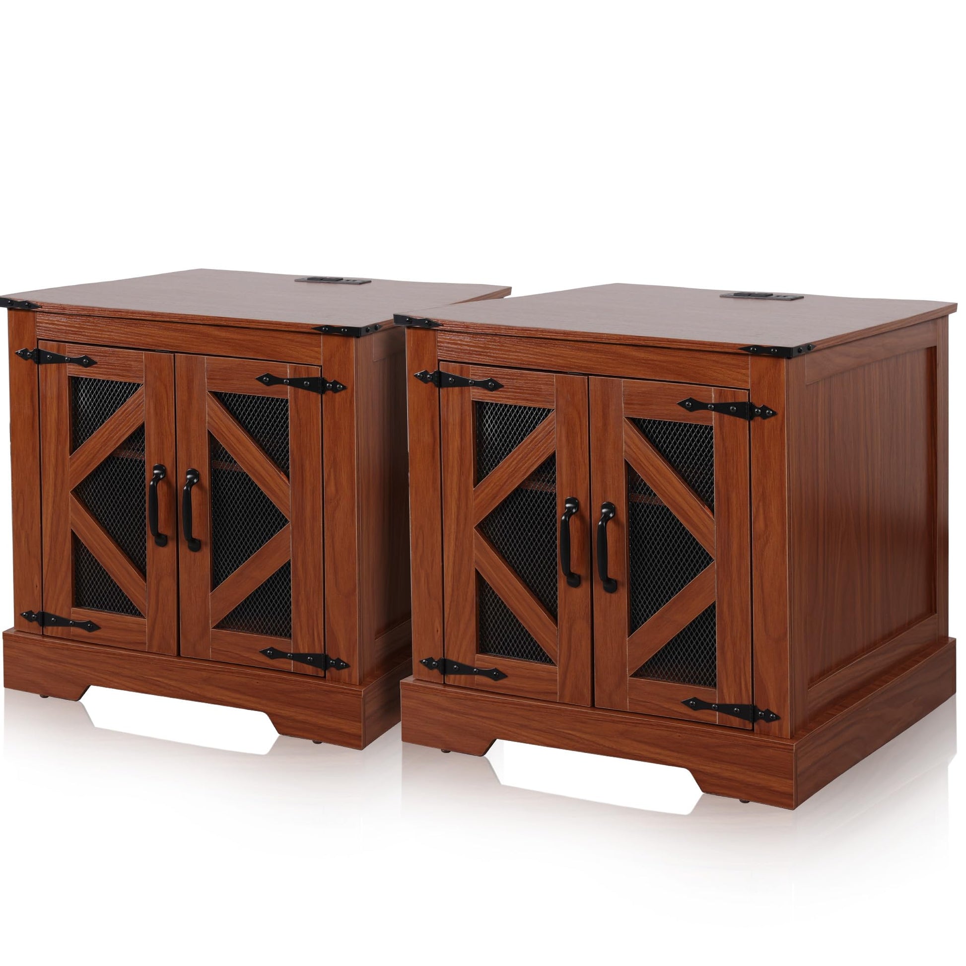 - The night stand set of 2 with charging station, 2 AC outlets and 2 USB ports,It can be used as a laptop table for easy charging