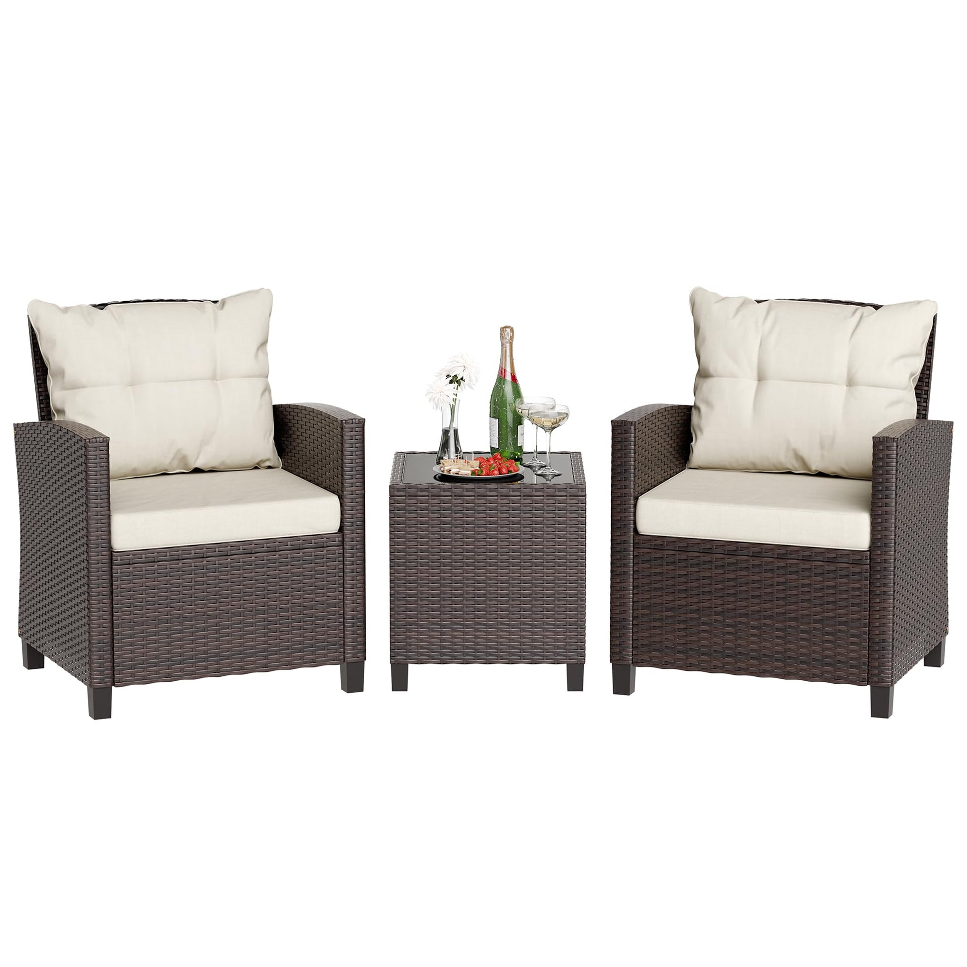 - Sturdy bistro set: The 3-piece patio furniture set is constructed with durable rattan wickers. High-quality rattan protects products from fading and cracking. Its sturdy construction and weather-resistant material ensure