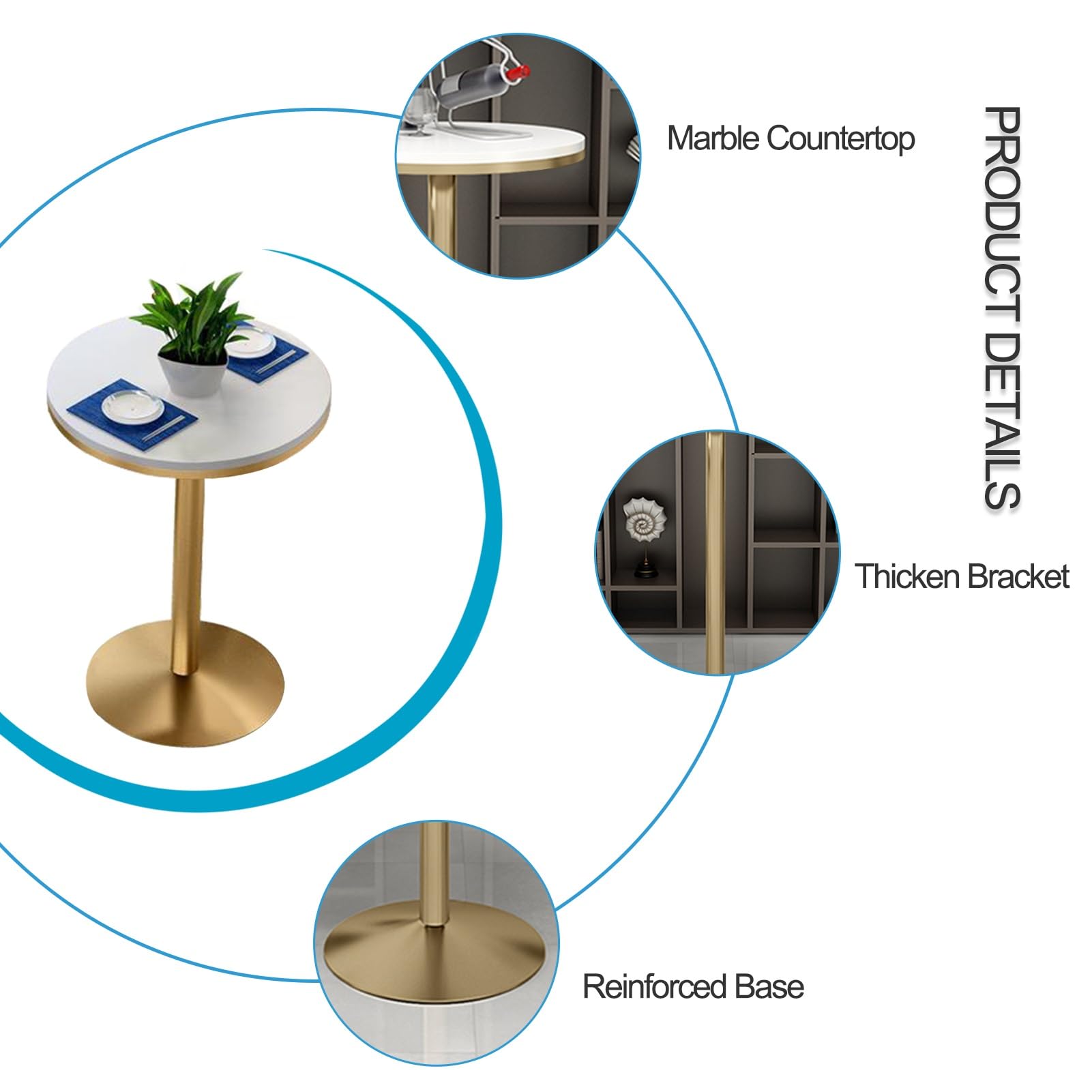 Round Bar Table Bistro Pub Cocktail Table Marble Top Table with Gold Metal Base