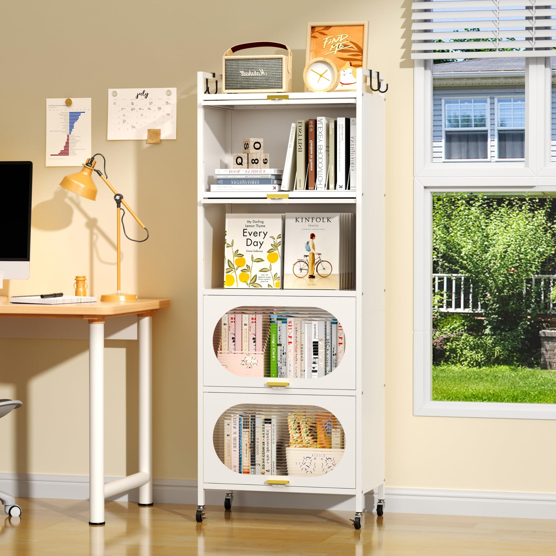 - SMOOTH UNIVERSAL WHEELS WITH BRAKES:Measuring 12.6D×23.6W×60.6H, this white cabinet is ideal for storing food, dishes, towels, and more, keeping your kitchen, bathroom, or dining room neat and tidy. This kitchen appliance storage is equipped with 4 high quality smooth rolling casters, 2 of which come with convenient brakes. This design not only allows the rolling cabinet to be easily moved anywhere, but also ensures its stability with a simple braking mechanism, which keeps the metal storage cabinet with wheels stable. In addition, the top of the bakers rack with storage cabinet comes with an anti-fall guard, a design that effectively protects items from falling down