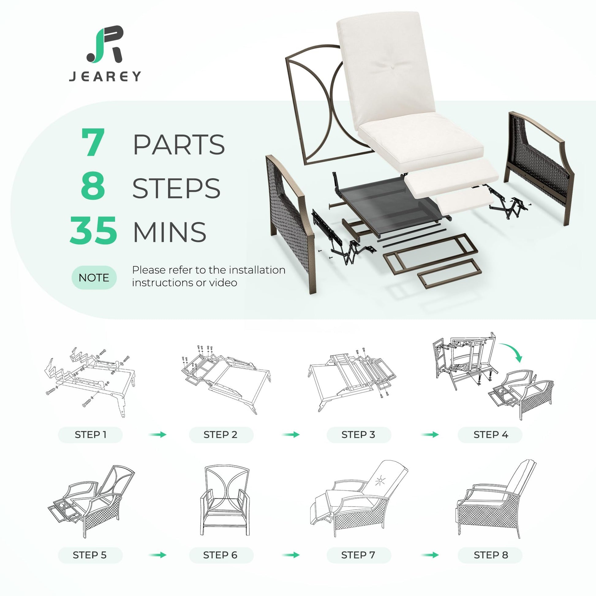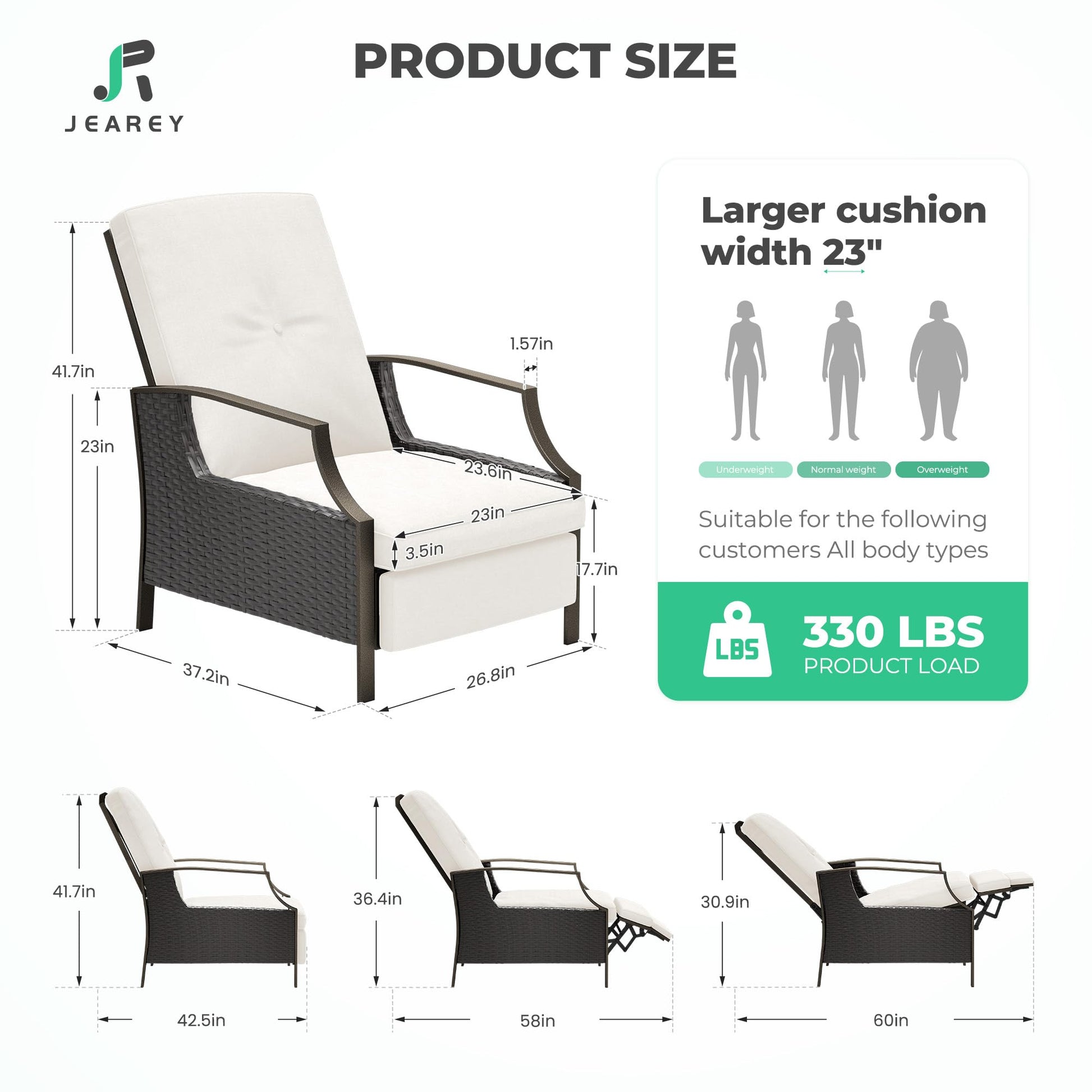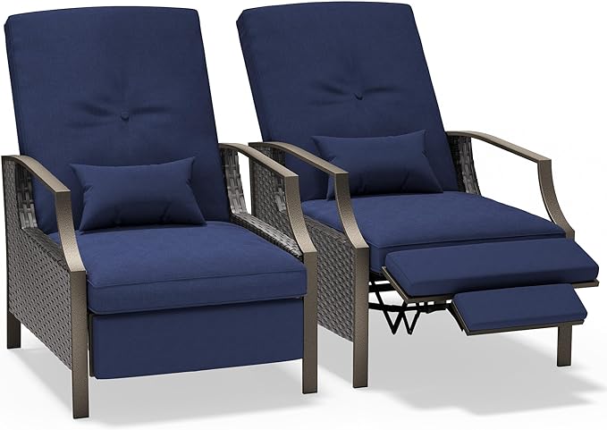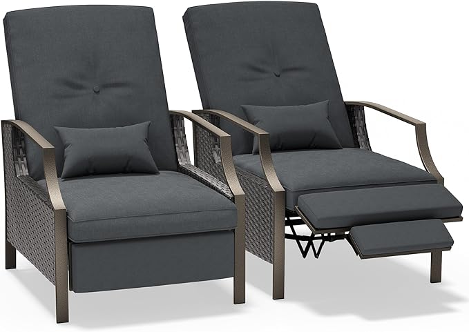 - ERGONOMIC DESIGNThe JEAREY reclining patio chairs has ergonomically designed armrests that provide you with excellent support and comfort needs. The high backrest design can naturally fit your body, so you can get full relaxation for your body and mind