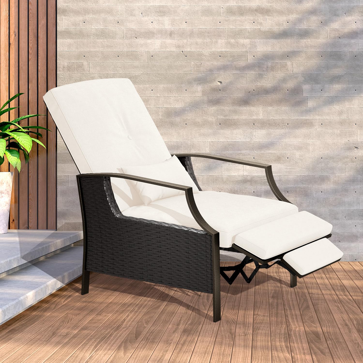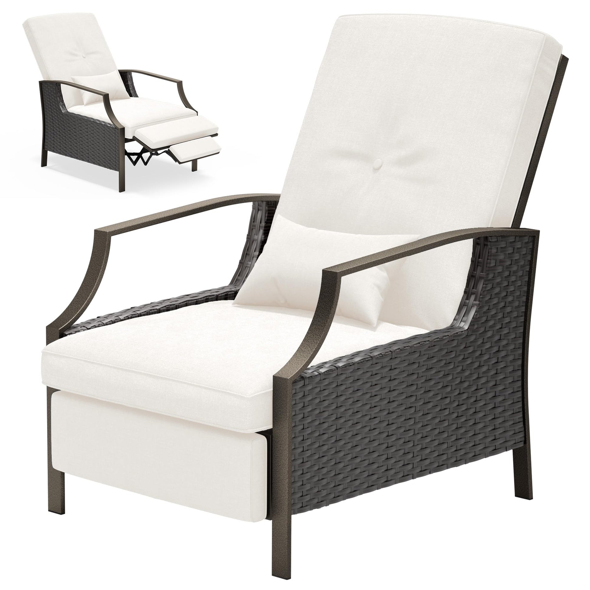 Outdoor Recliner Chair,PE Wicker Patio Lounge Chairs with Extended Footrest