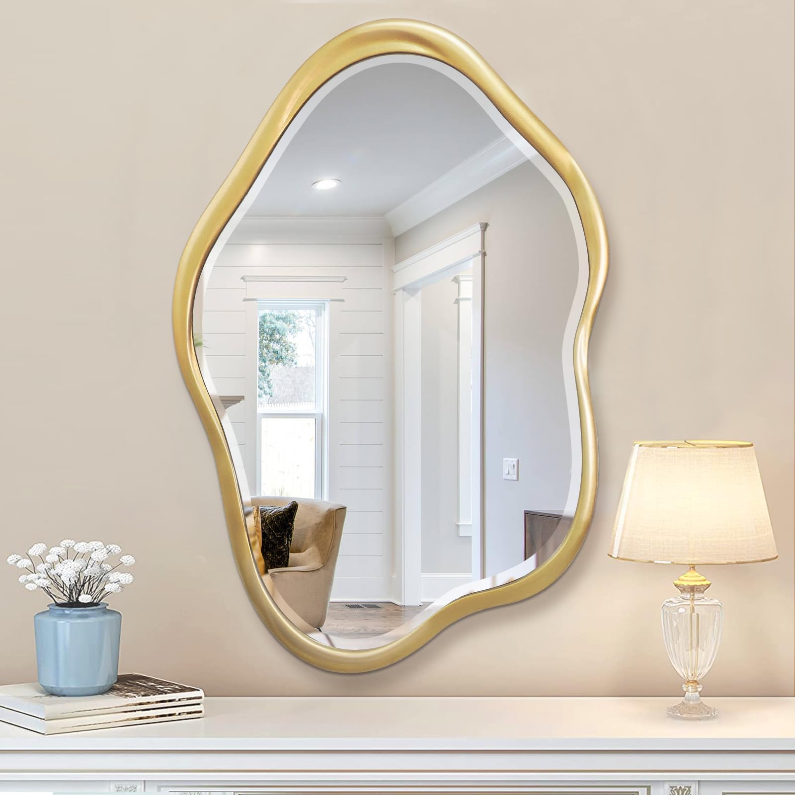 Irregular Wall Mirror, 24"X36" Gold Asymmetrical Bathroom Vanity Mirror