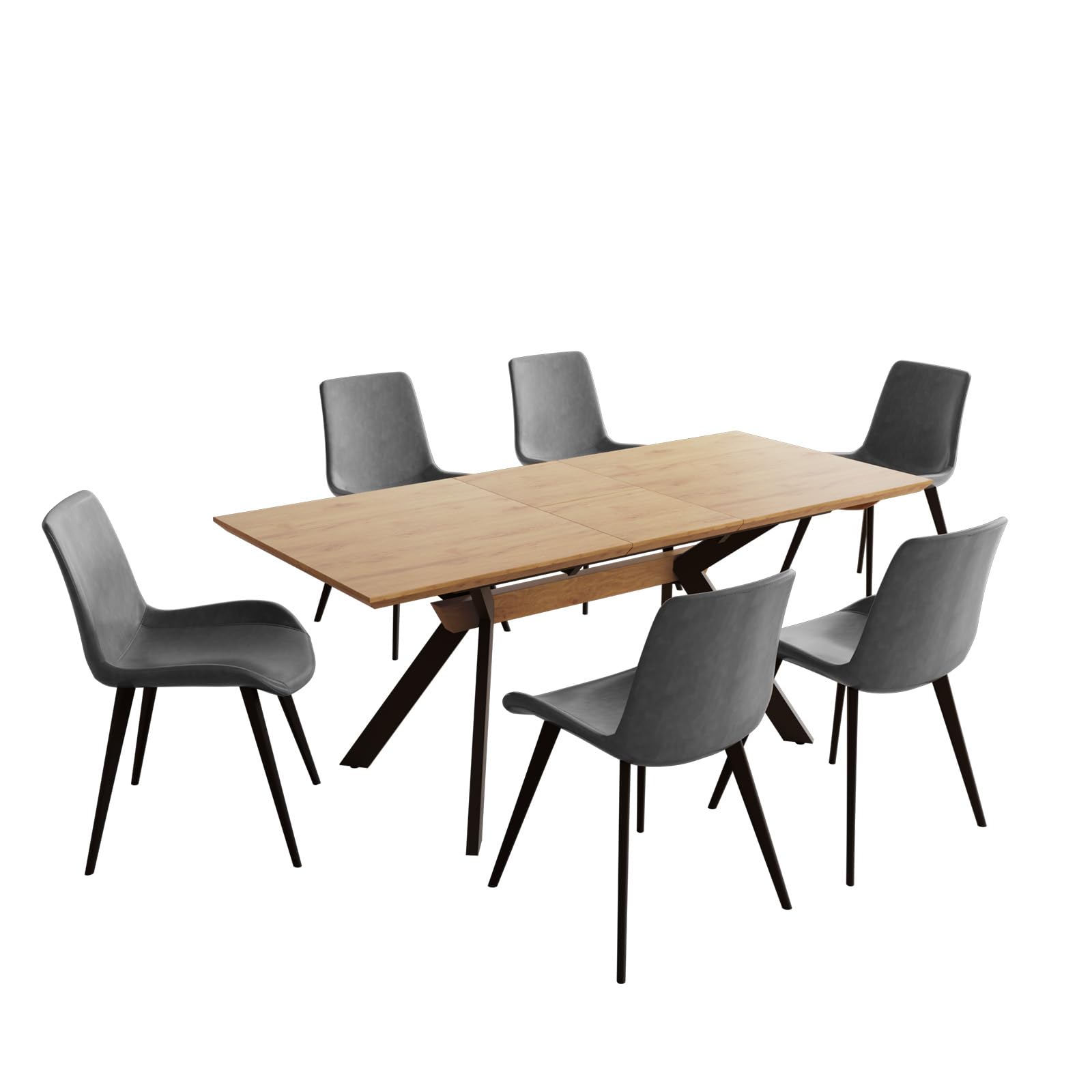 - This dining table set includes 1 dining table and 6 dining chairs in 5 packages for shipping. The table top is very easy to clean and maintain, 1.57 inches thick table top plate can be used for a long time without warping, the dining table is made of MDF material is very safe.