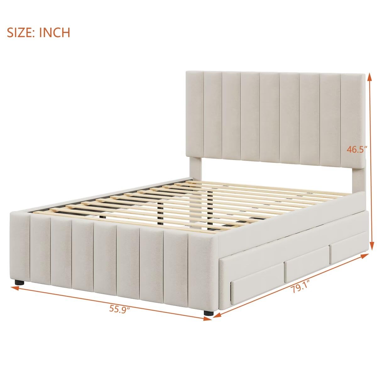 - [Overall Dimensions] Overall Product Dimension: 79.1"L x 55.9"W x 46.5"H. Mattress not included. The platform bed is delivered in 2 packages, along with the installation manual and full set of hardware necessary to guide you through the process of assembly, and the bed will be assembled conveniently.