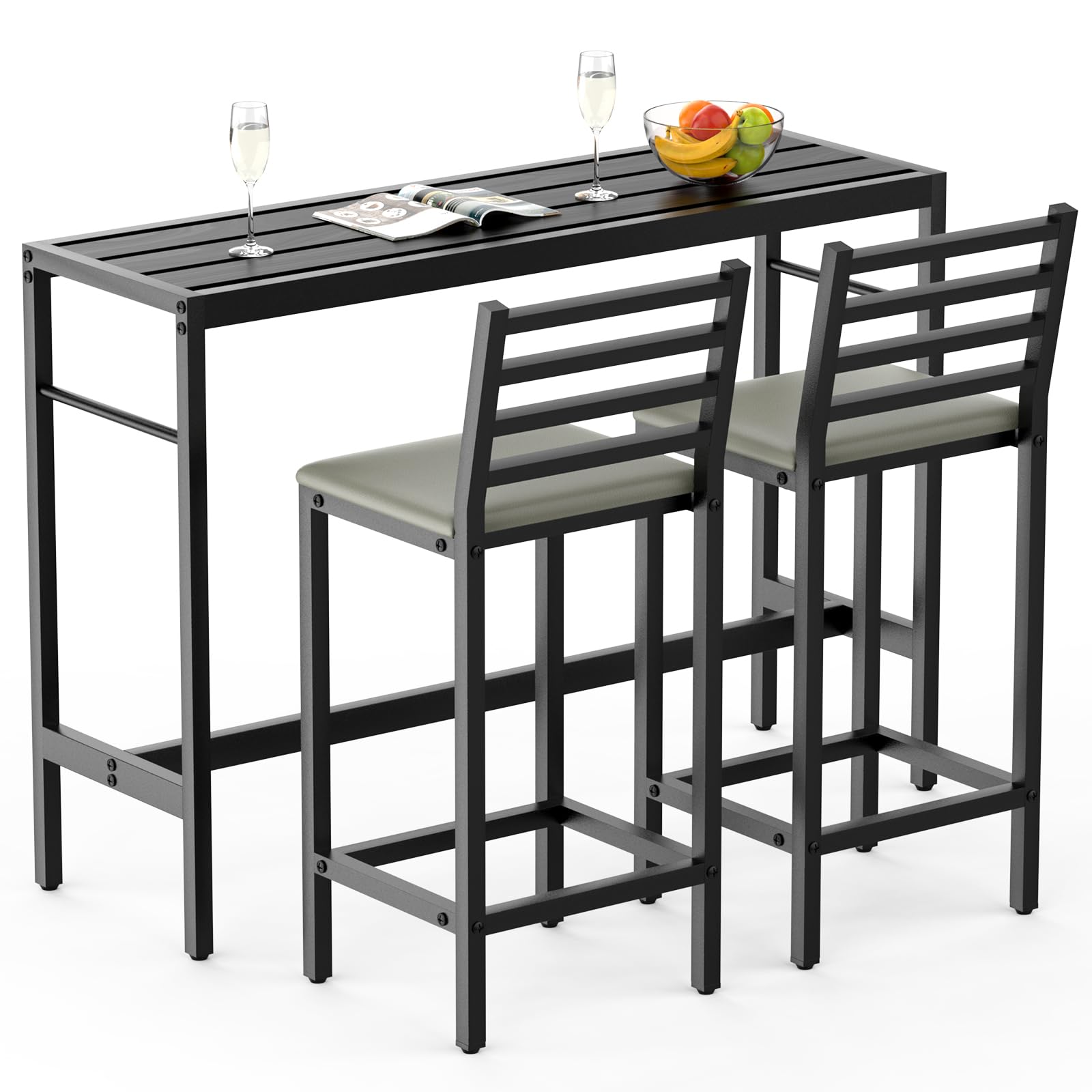 - Comfortable Seating: Bar stools with ergonomic backrests and cushioned seats made from high-density sponge, offering excellent support and comfort for extended use.