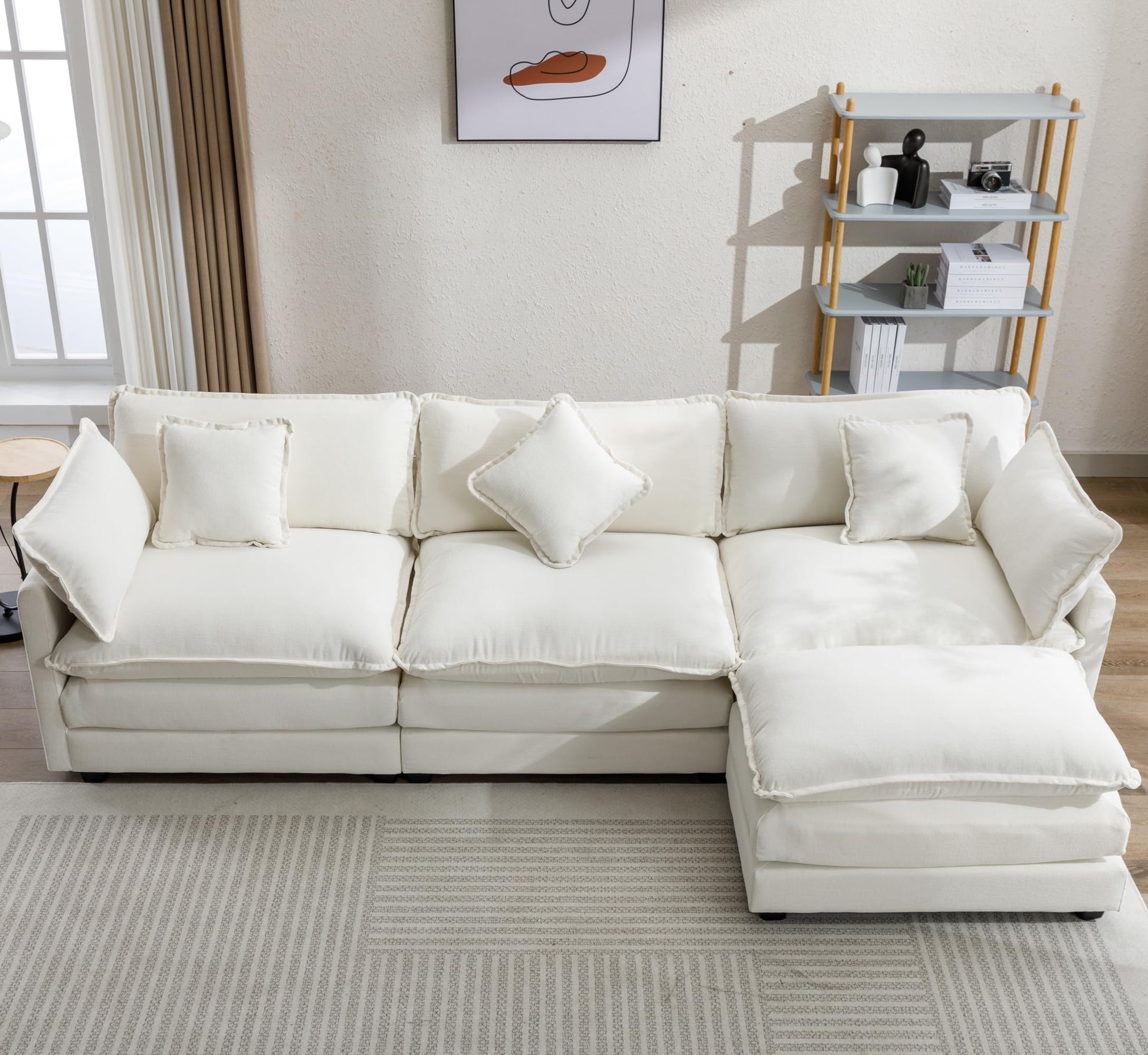- Designed in a unique L-Shape, this sofa not only provides ample seating space but also adds a modern and stylish flair to your living area, creating a cozy and inviting atmosphere. Embodying sophistication with beautiful detail and modern charm, this chenille sofas palatial premium comfort.