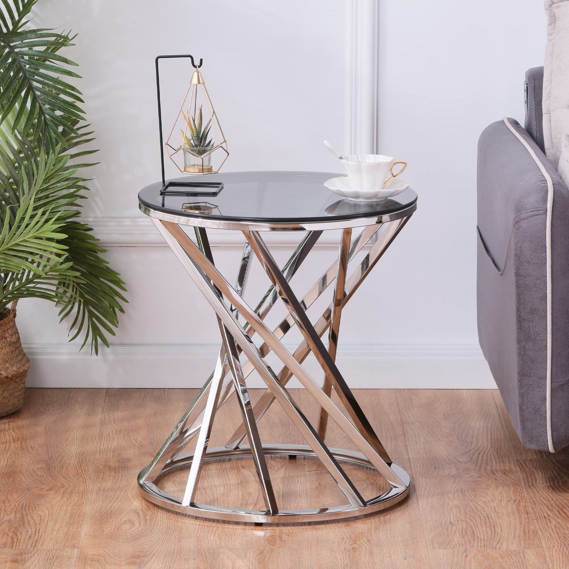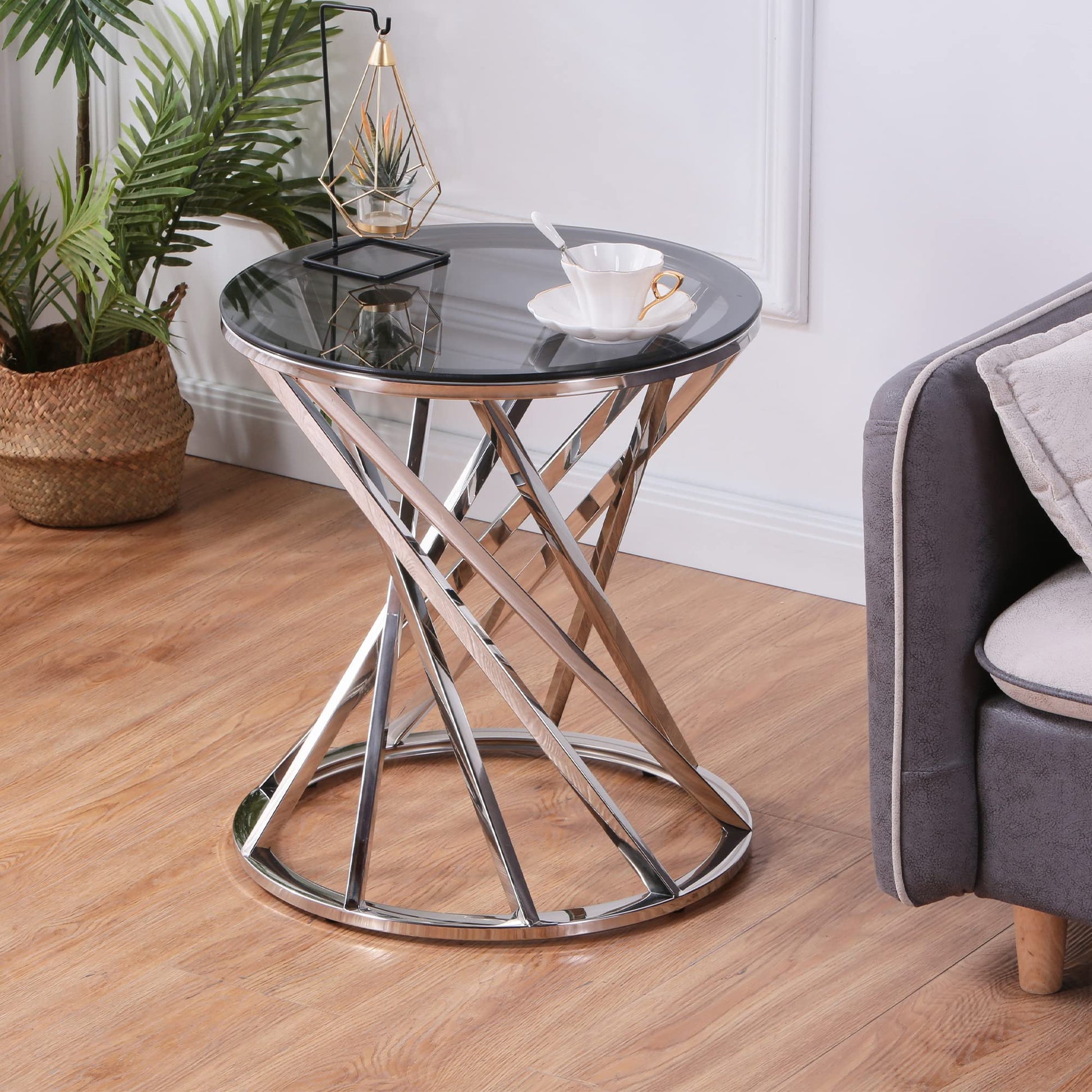 Glass Round End Table Silver Side Table Modern Spiral Center Small Side