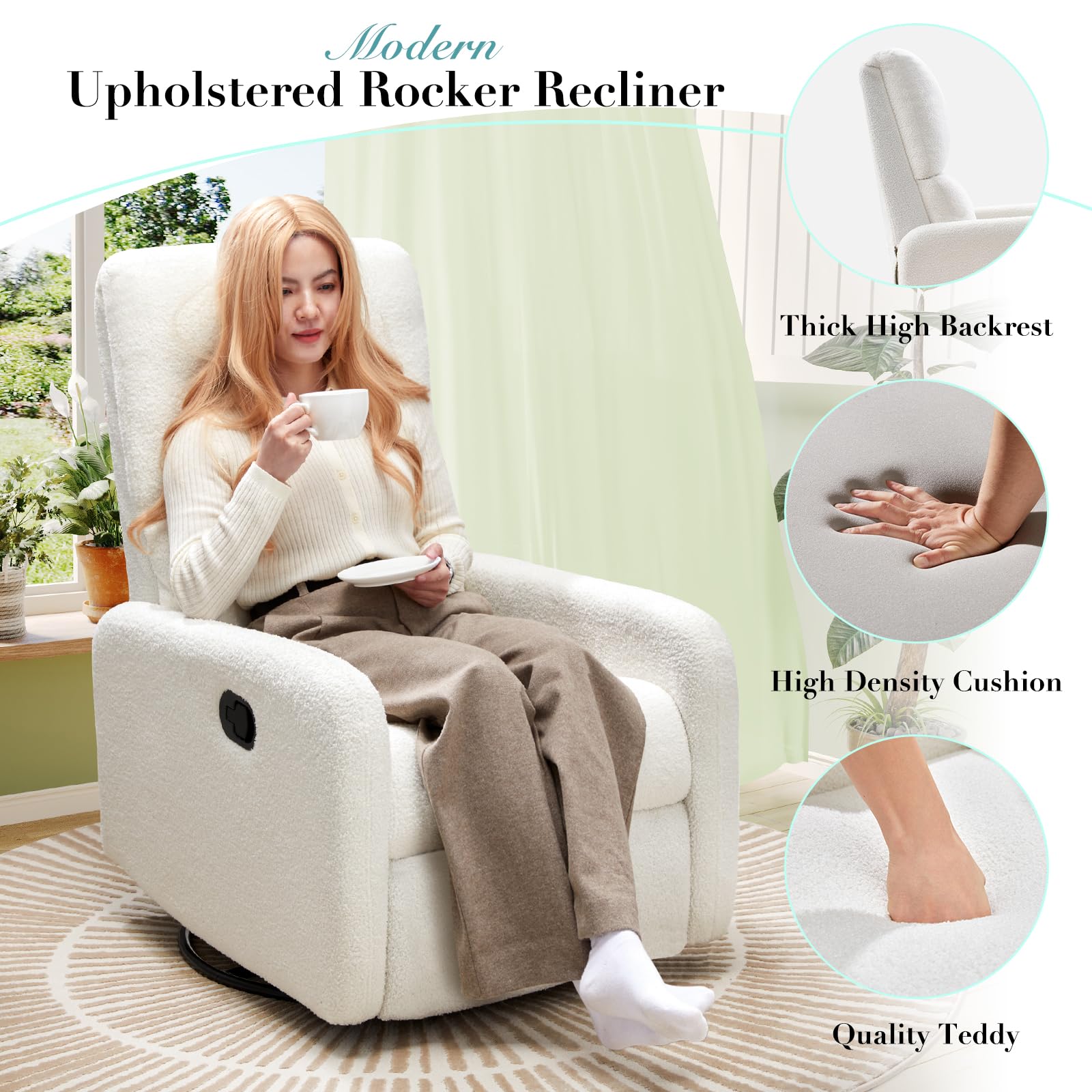 Swivel Rocking Chair - Massage Recliner, Nursery Glider with High Back