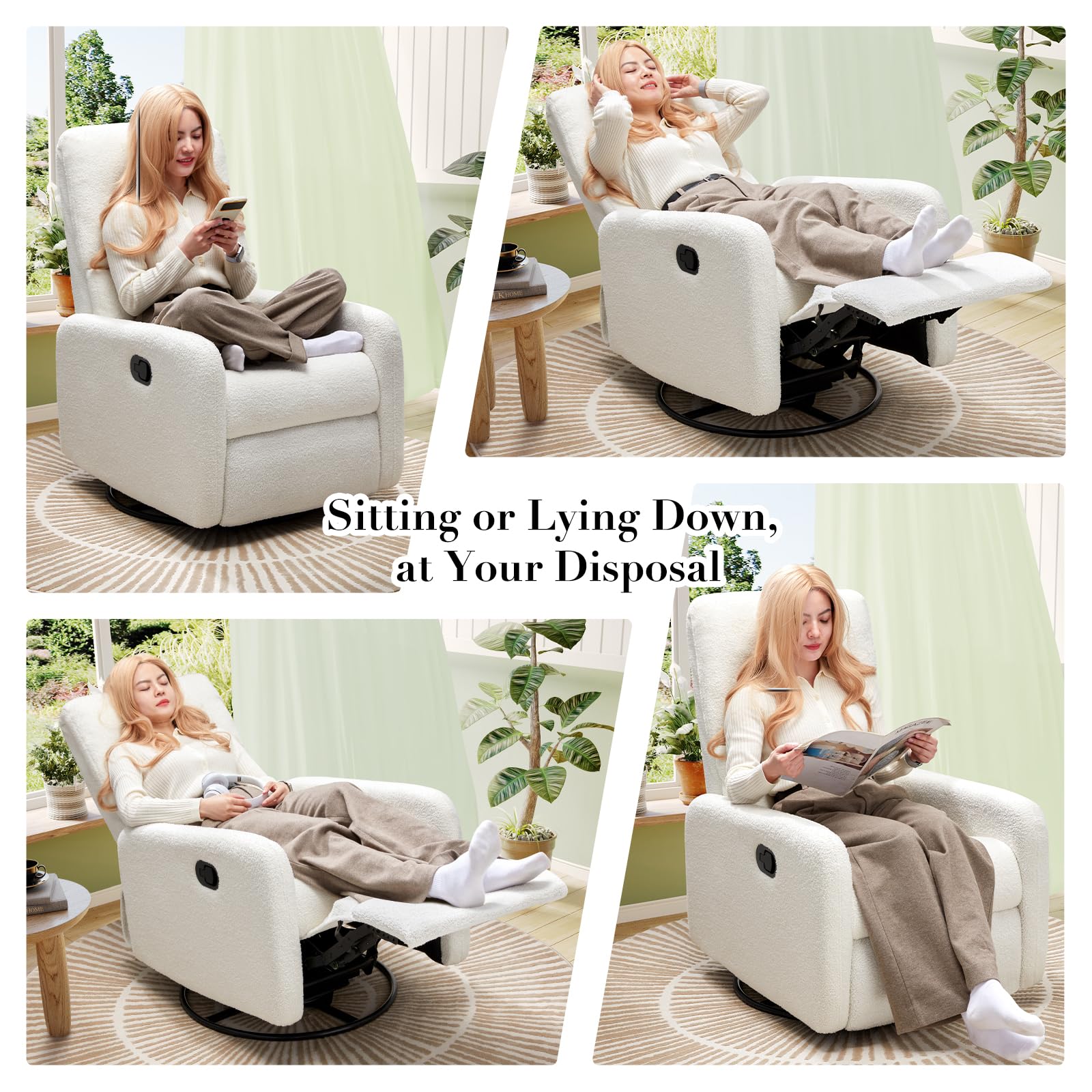 - 4-in-1 Comfort: Our recliner chairs offers versatile functionality with 360° swivel, rocking, 2-point massage and reclines up to 160° for ultimate personalized comfort.