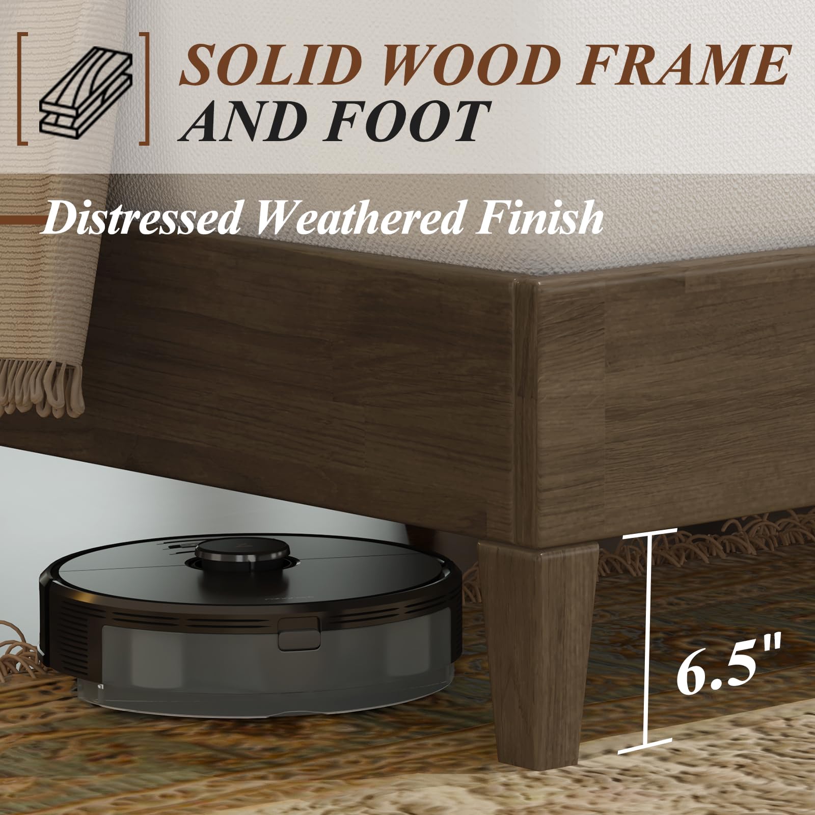 - Sturdy wooden structure: Platform bed frame is constructed of durable solid rubber wood, bringing the beauty of natural wood grain into your home.