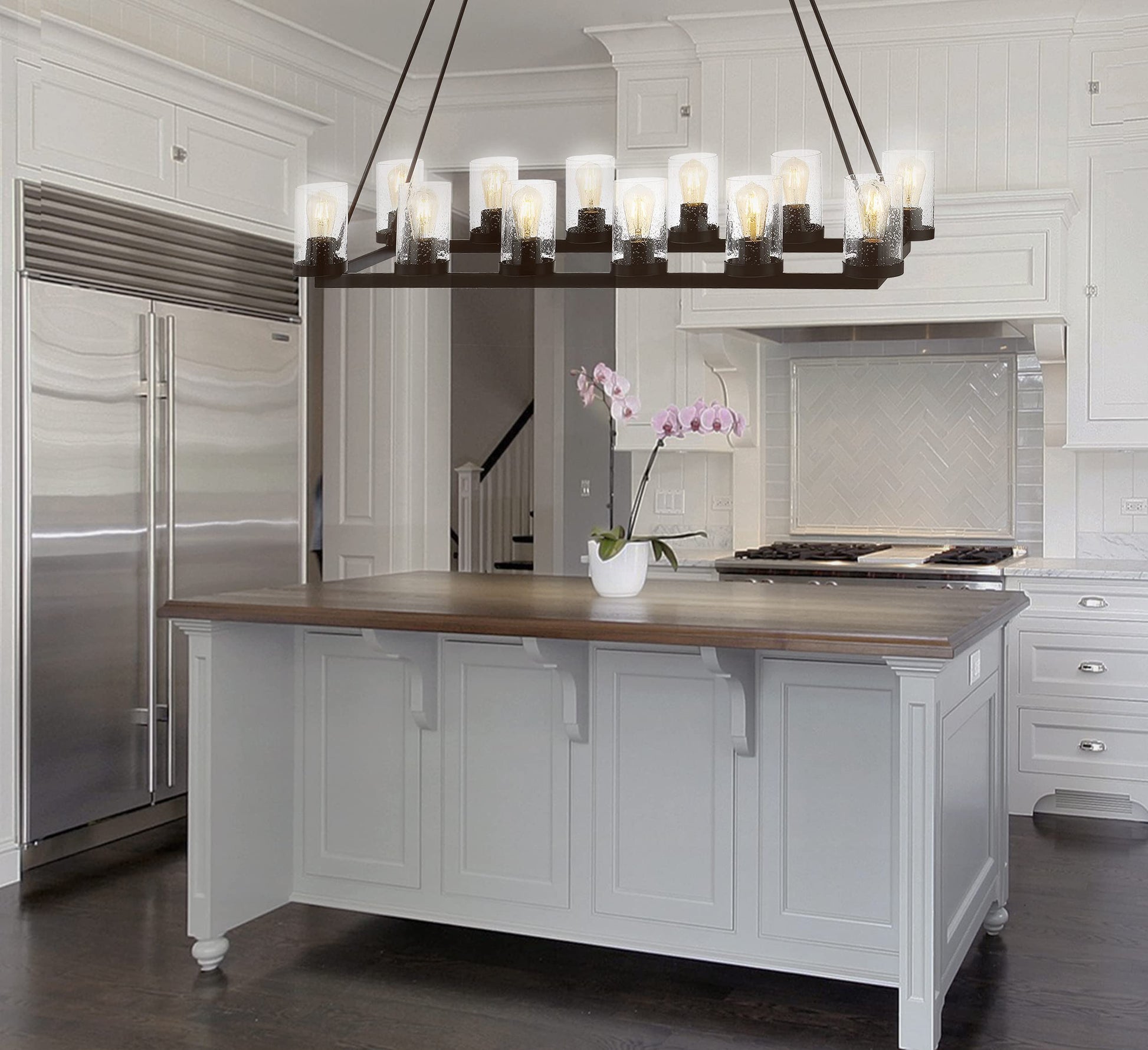 JYL7555A Athos 45.5" 12-Light Iron Rustic Farmhouse Linear LED Chandelier Pendant Bohemian Cottage