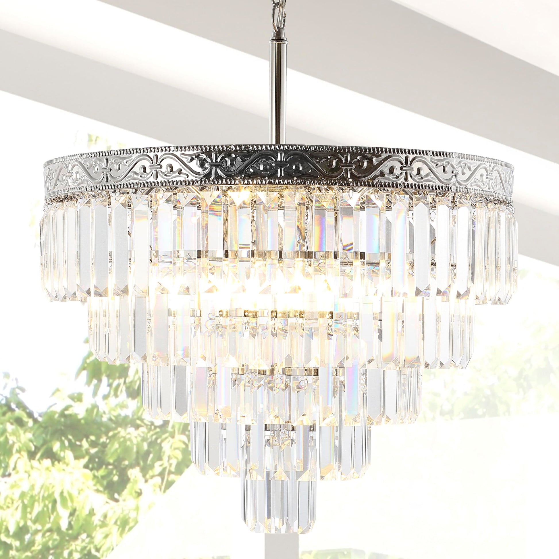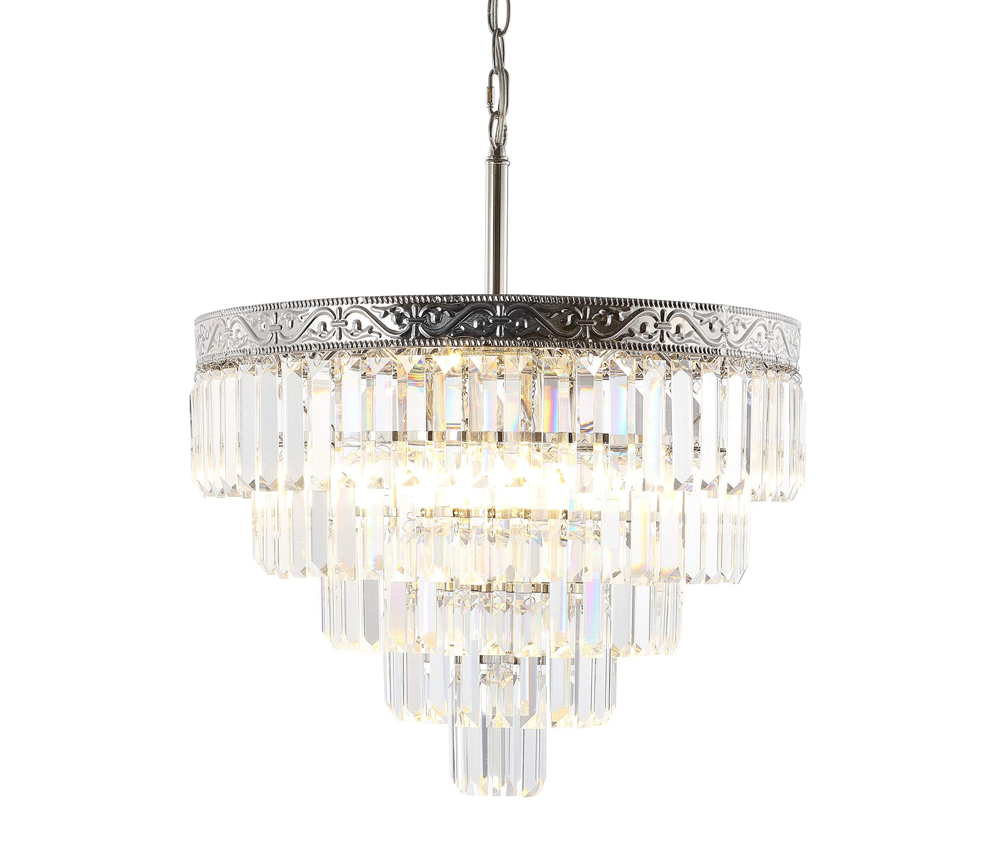 - A classic cake-shaped chandelier in a modern faceted crystal shape, this overhead light is the perfect traditional touch for your home décor