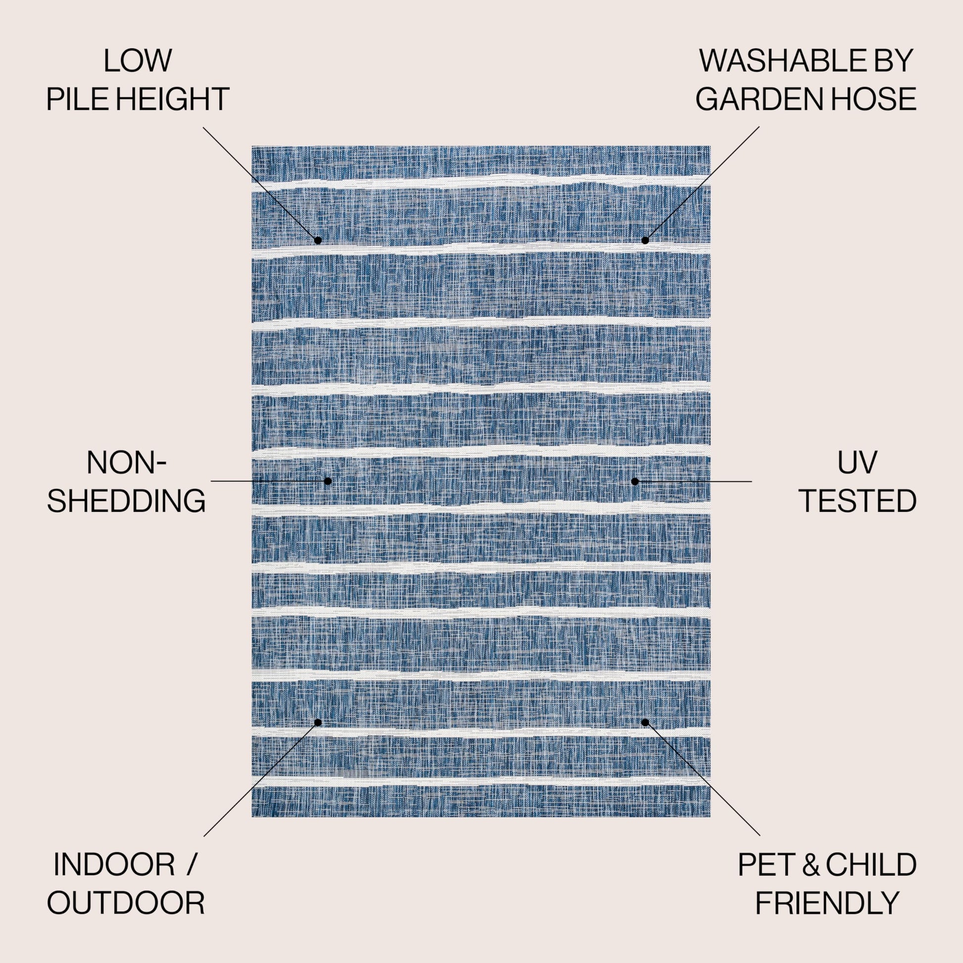 - STAIN-RESISTANT AND PET-FRIENDLY: This rug is made from synthetic fibers that resist UV fading; The pet-friendly low-pile construction won’t accumulate dirt, and spills clean up easily; It’s been machine-woven so the rug fibers will stay put