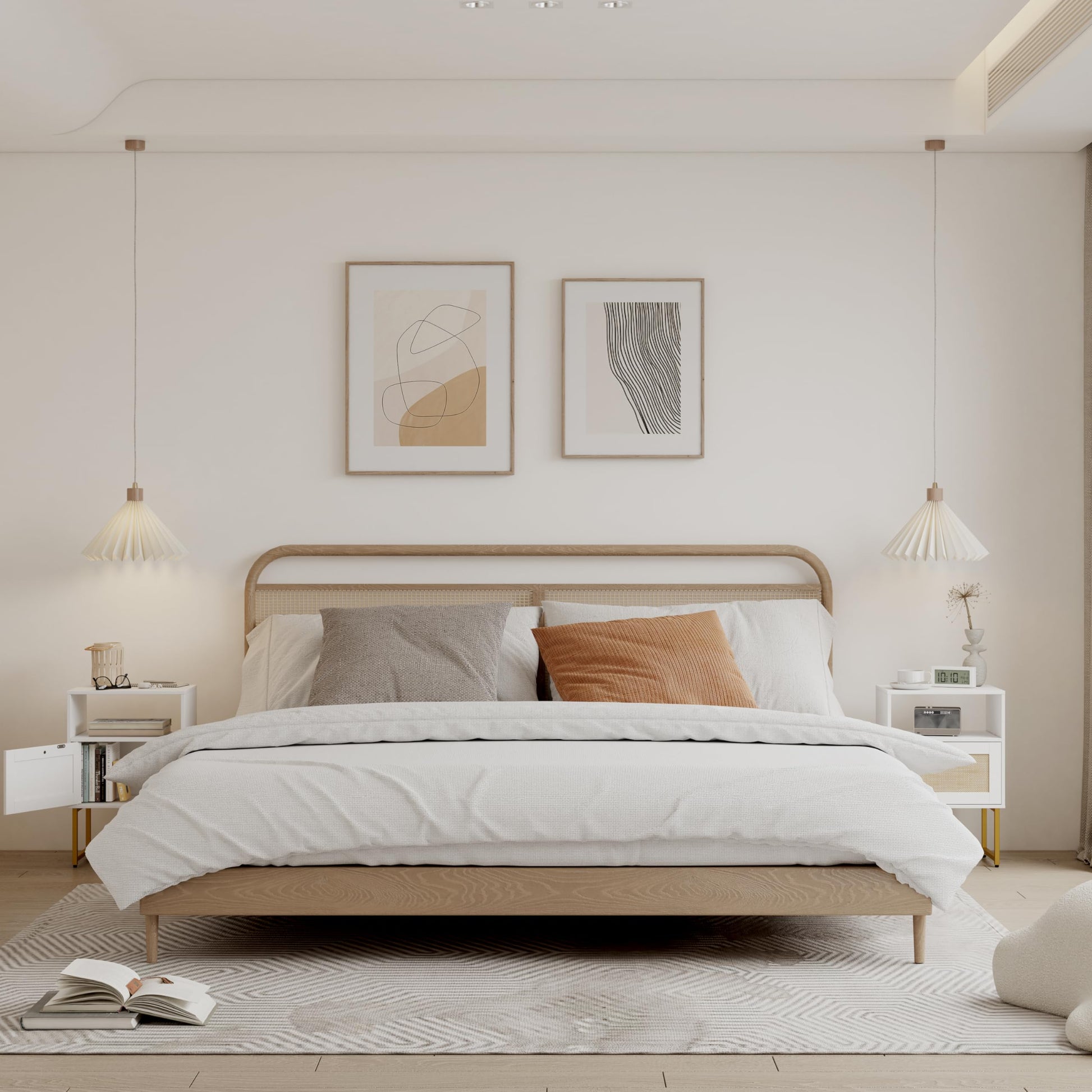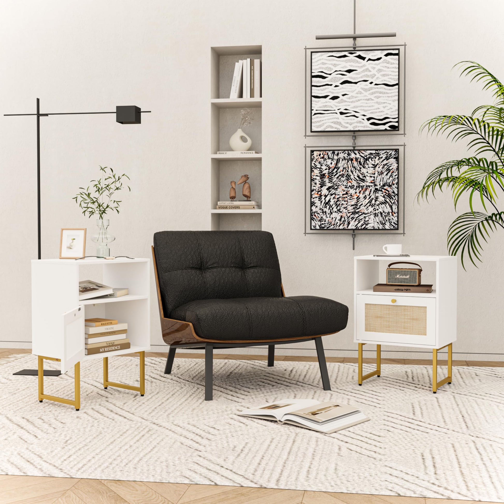 - Elegant Rattan Farmhouse Style: This bedside table combines elements of farmhouse and boho, the chic rattan design, elegant lines and stylish edges, the combination of gold and oak, is ubiquitous to highlight this side table the nobility and elegance are enough to make your home look stylish and beautiful.