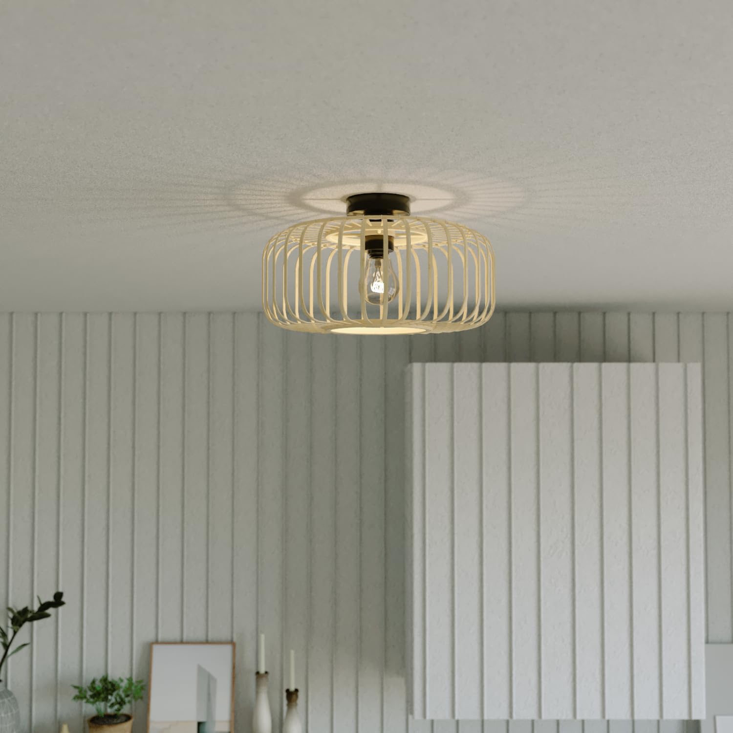 Rattan Flush Mount Light Fixture, 16 Inch Large Boho Light Fixtures Ceiling