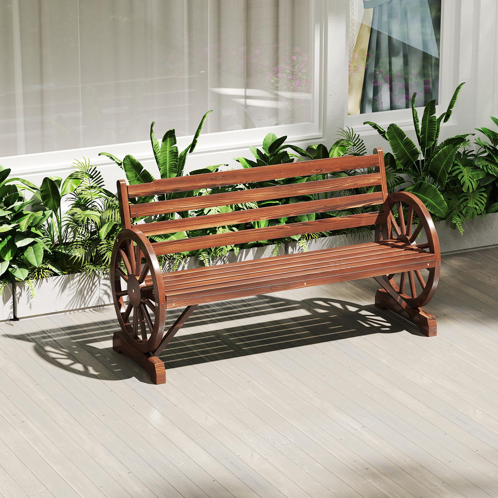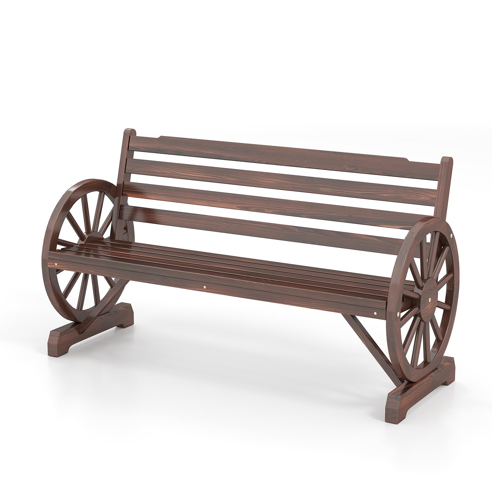2-Person Rustic Wooden Wheel Bench Wagon Wood Seat