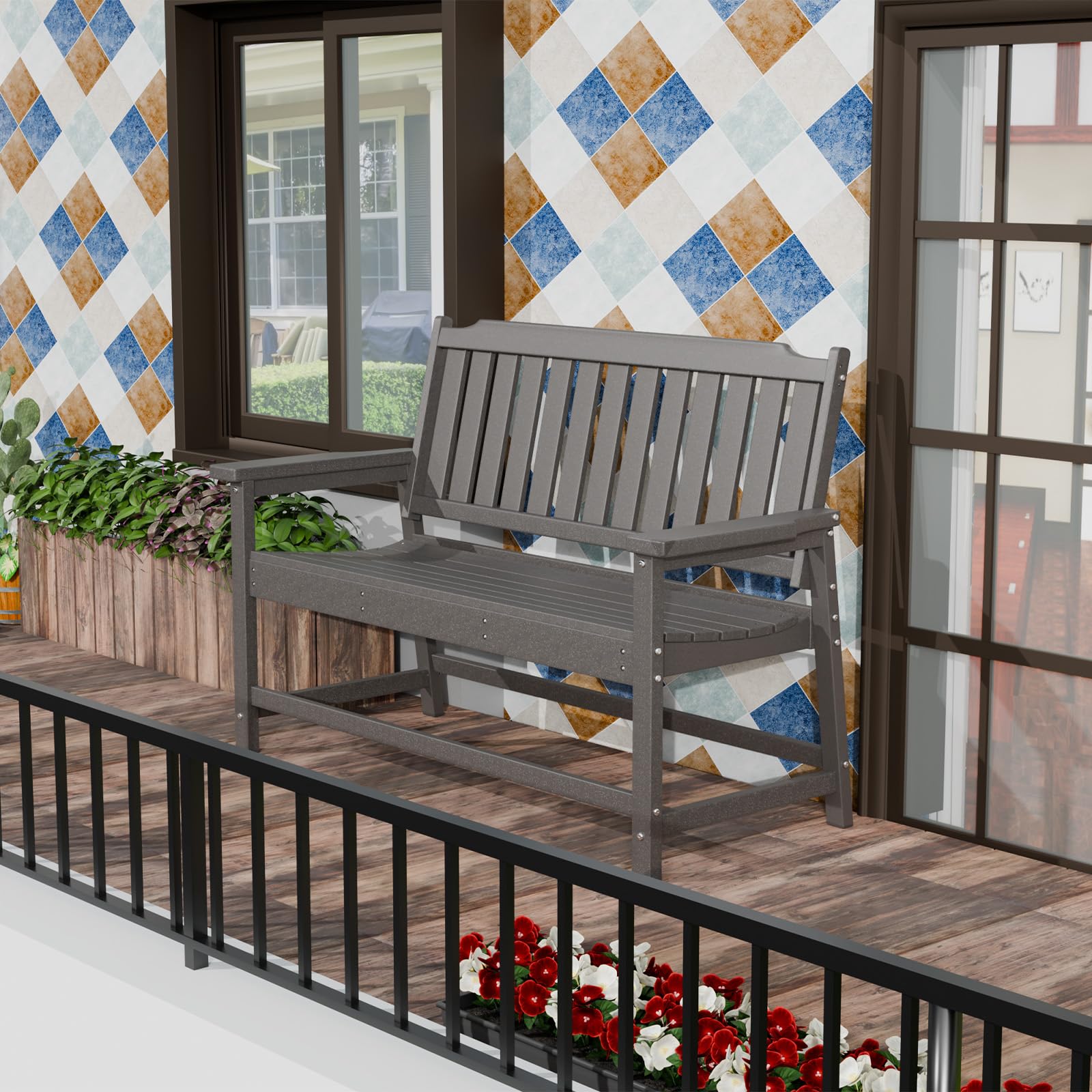 - Woodlike texture surface makes your patio bench look more nature outdoor. Its charming silhouette complements any garden, porch, or patio, adding a touch of rustic sophistication to your outdoor space