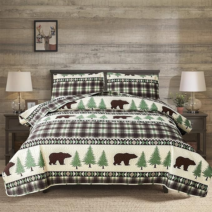 - Easy Care: Queen Size Rustic Cabin coverlet set provide your body a comfortable sleep experience. Machine wash with cold water, Tumble dry on low heat.The durable rustic quilts set is fade,shrink and wrinkle resistant,suitable for all season.