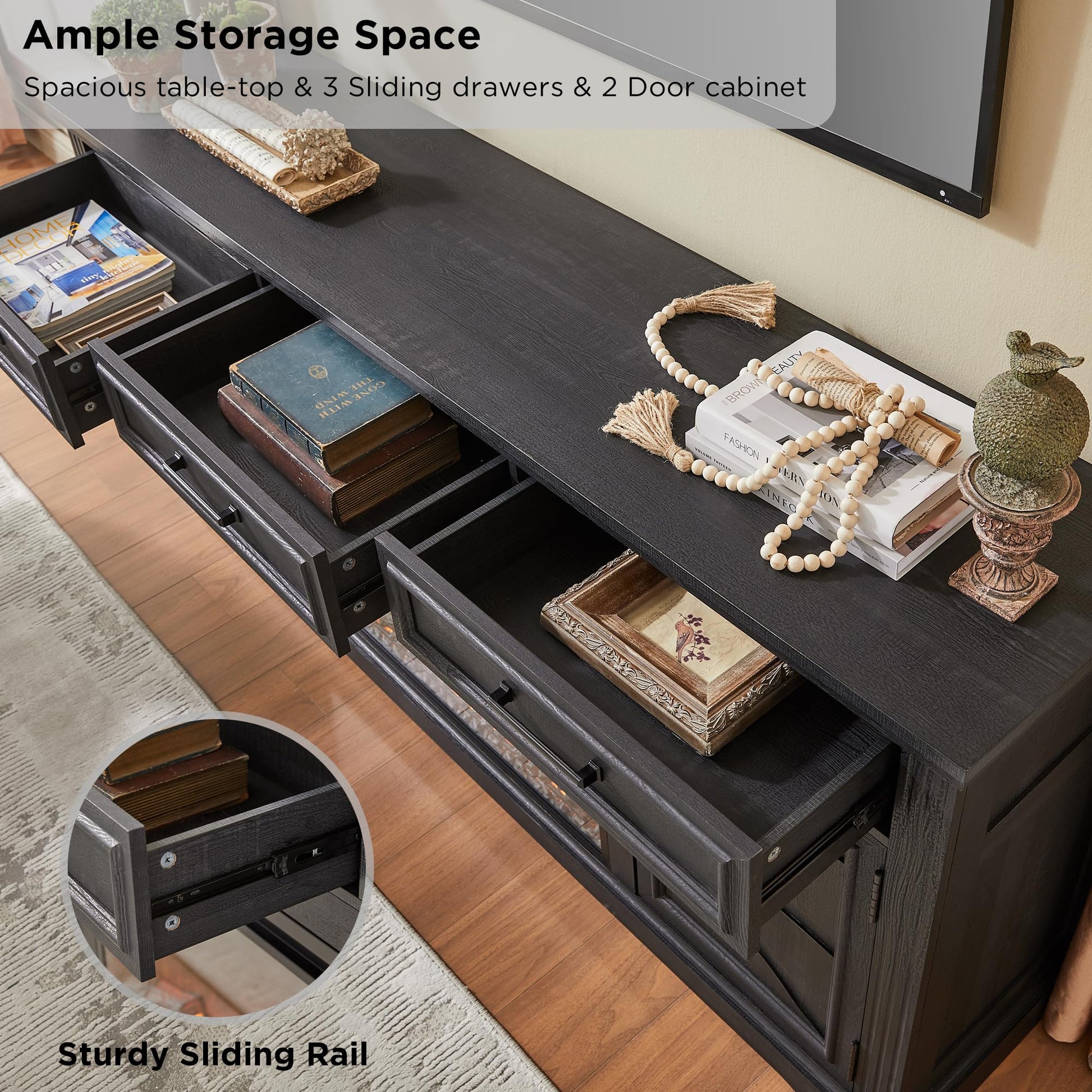- Ample Storage Space: This TV stand features a spacious stand top, 2 storage cabinets, and 3 big drawers, providing ample space to organize and store your media accessories, remote controls, DVDs, and other decor items. Keep your entertainment area clutter-free and organized.