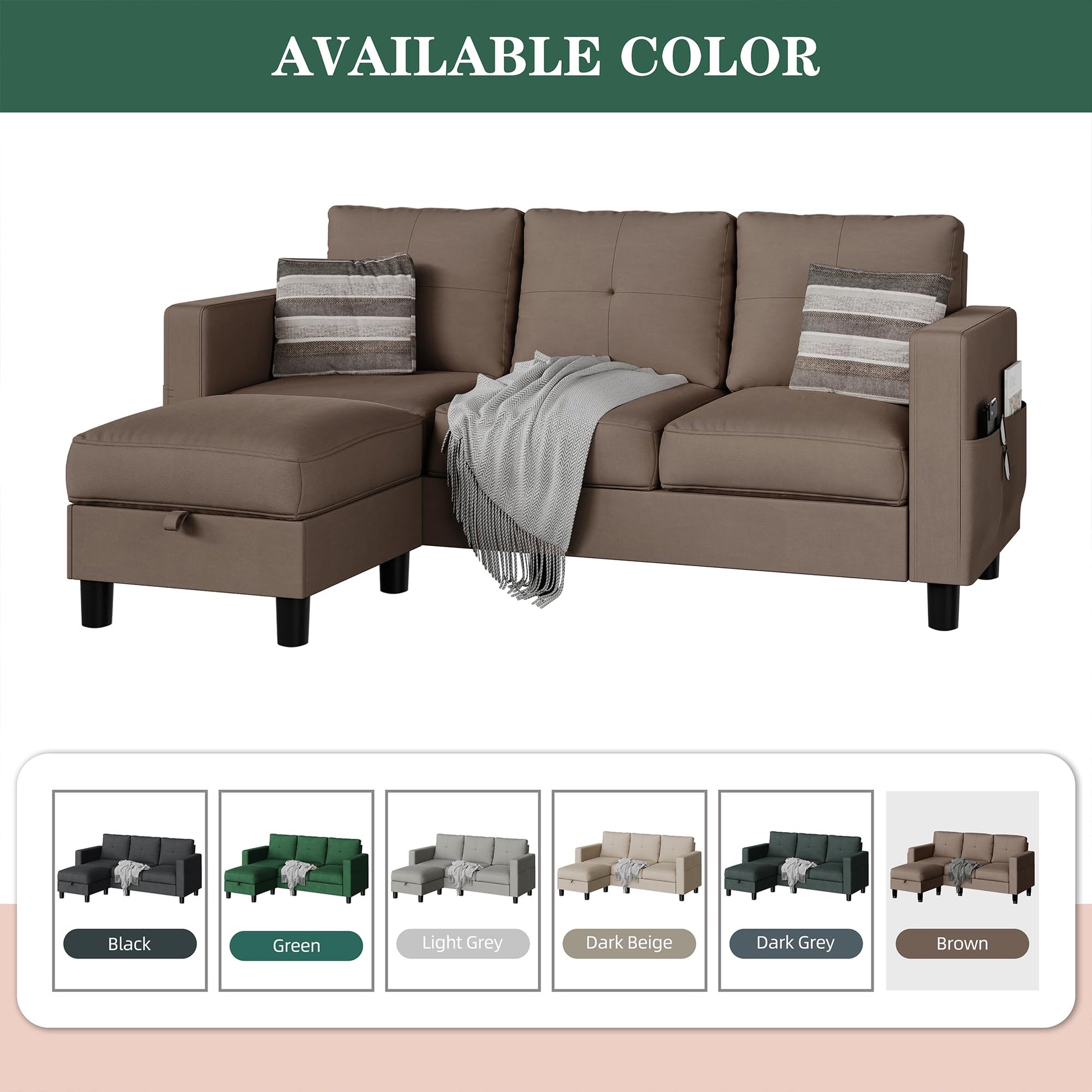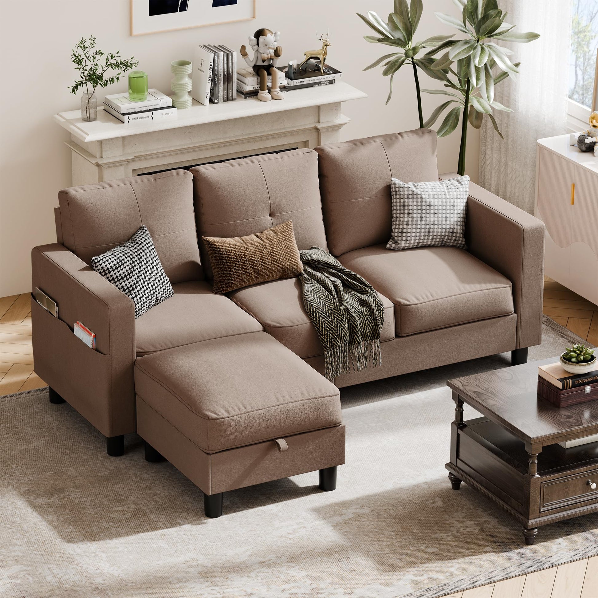 JY QAQA Convertible Sectional Sofa Couch with 3-Seat Sofa, L-Shaped Ottoman Couch with Modern Linen Fabric for Small Living Room, Apartment and Small Space(Brown