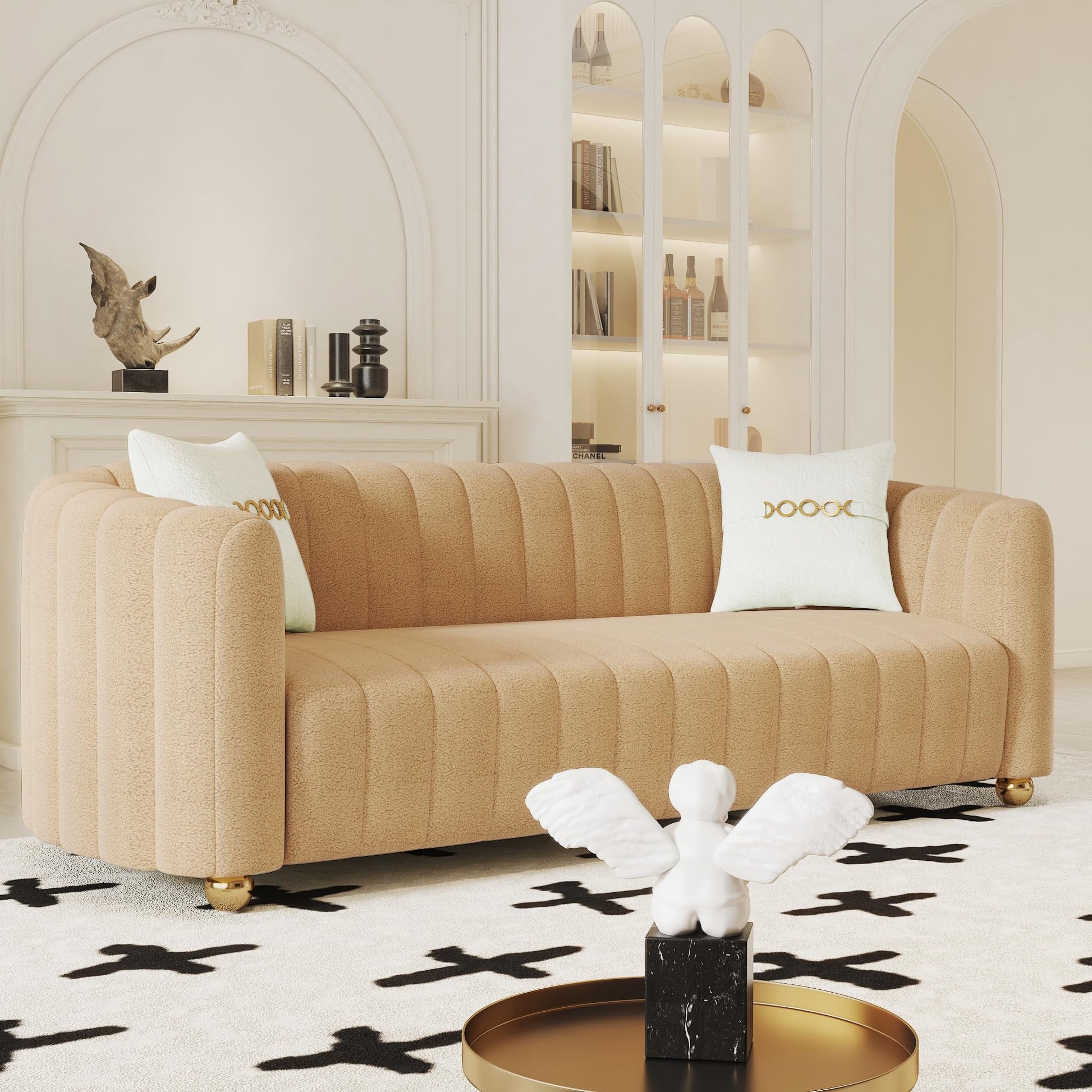 Lambswool Sofa for Living Room, 84" Mid-Century Modern Brown Couch