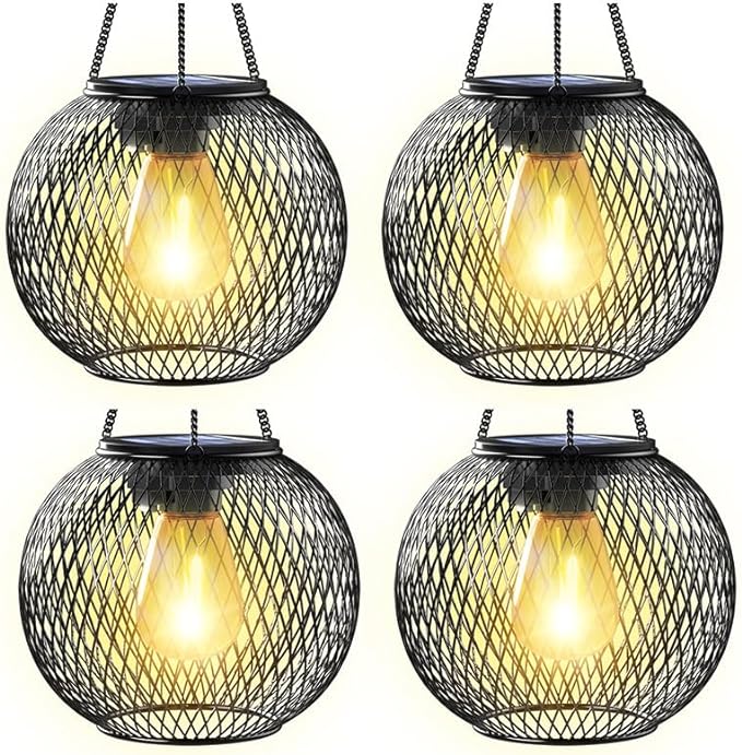 Solar Lantern Outdoor, Upgraded Hanging Lights Outdoor Garden Metal Lanterns Decorative