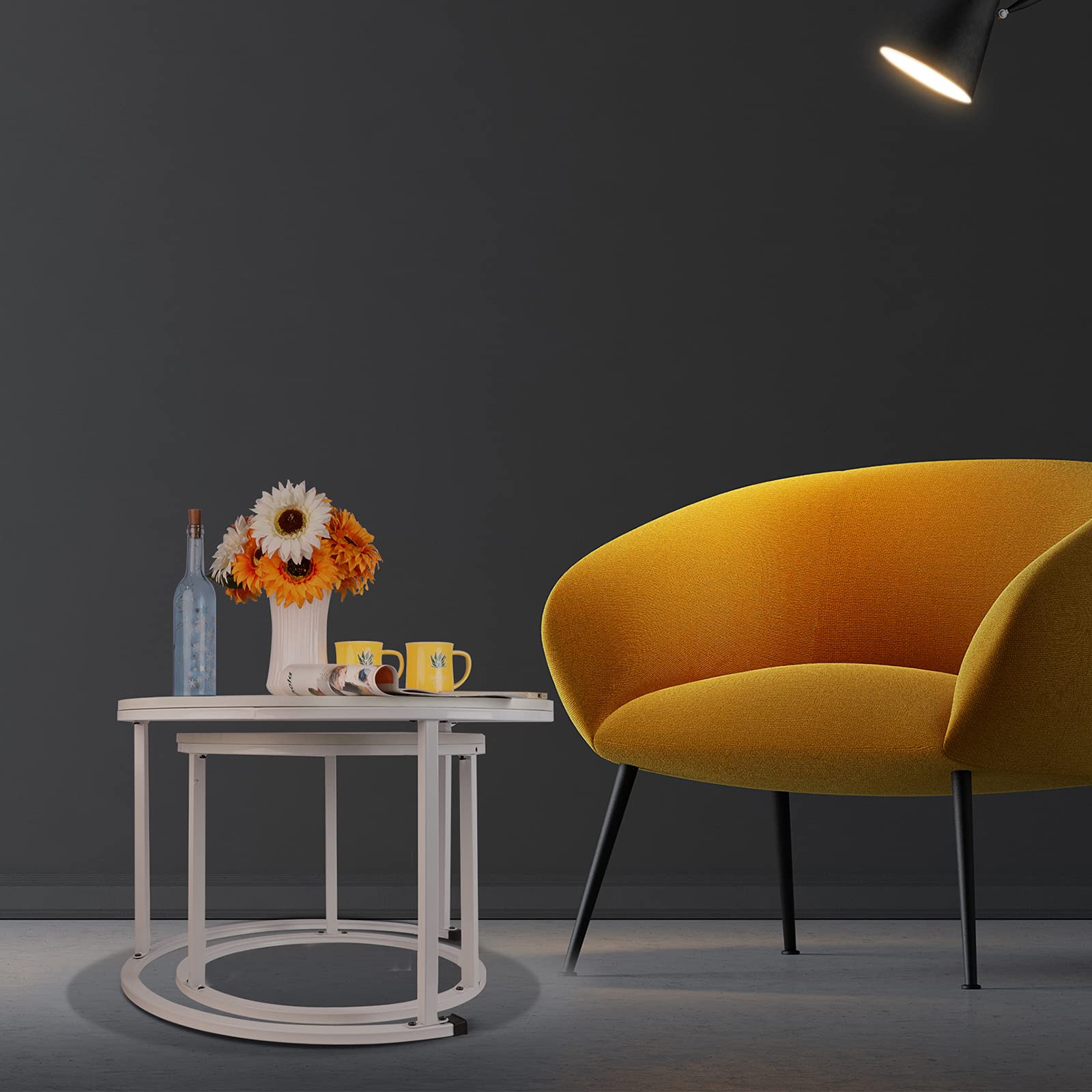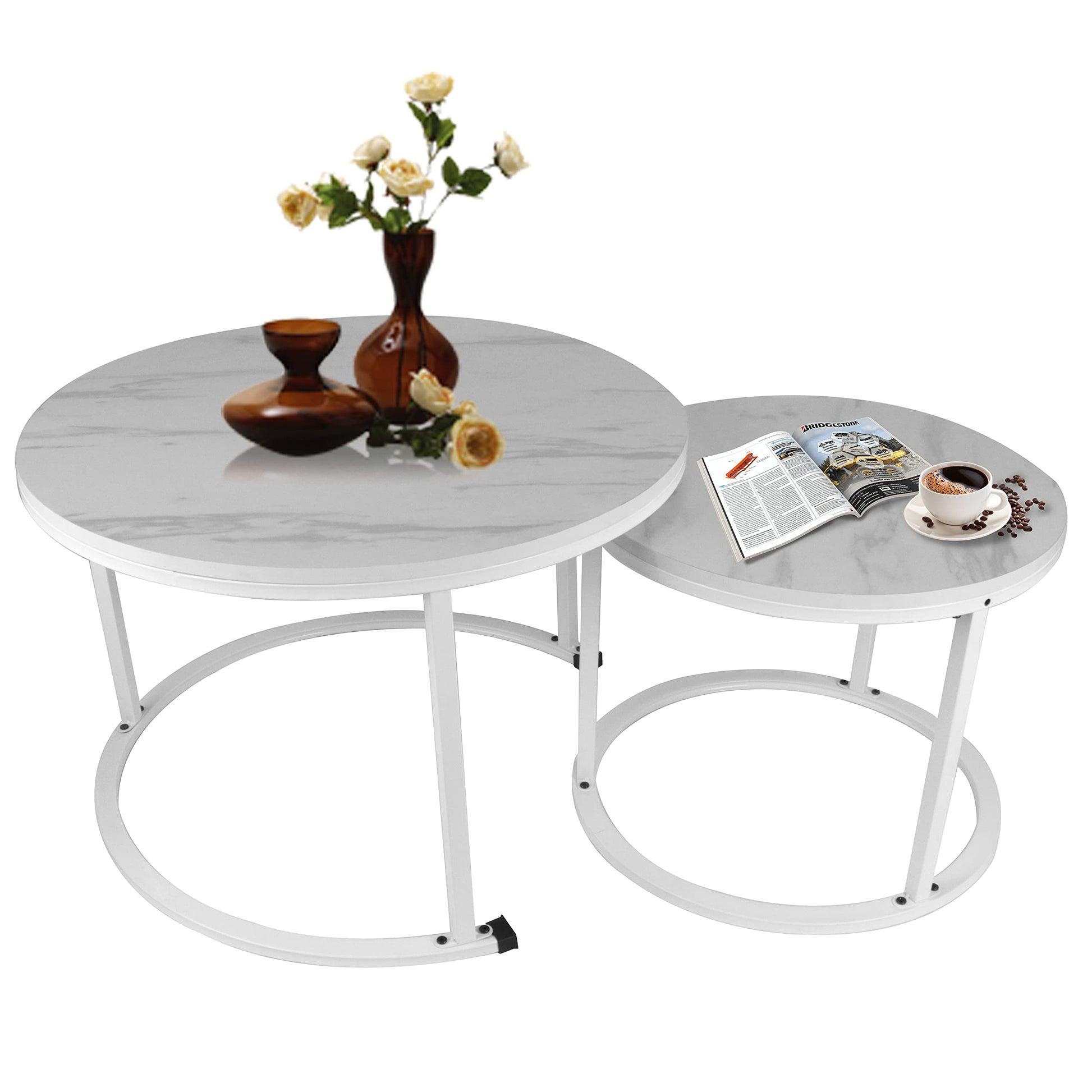 - The modern round coffee table set includes 2 small tables, and the nesting combination allows you to easily stitch them together or use them separately. Compact size and lightweight, easy to move and carry. You can distribute these end tables throughout the room individually or put them nested for easy-access coffee and snacks. Perfect for living room, bedroom, balcony, small spaces, etc.