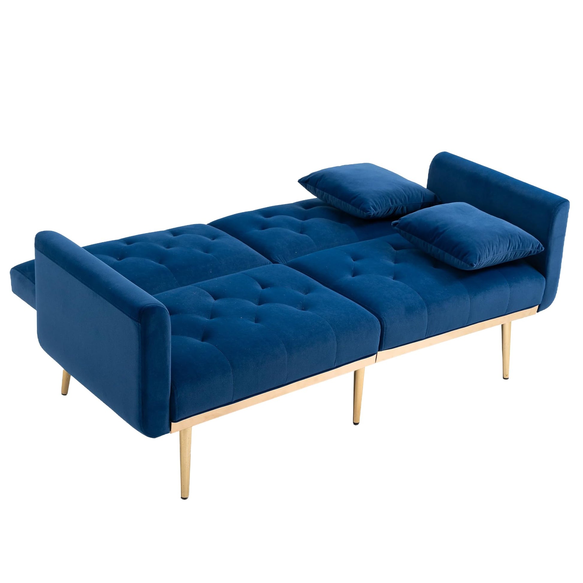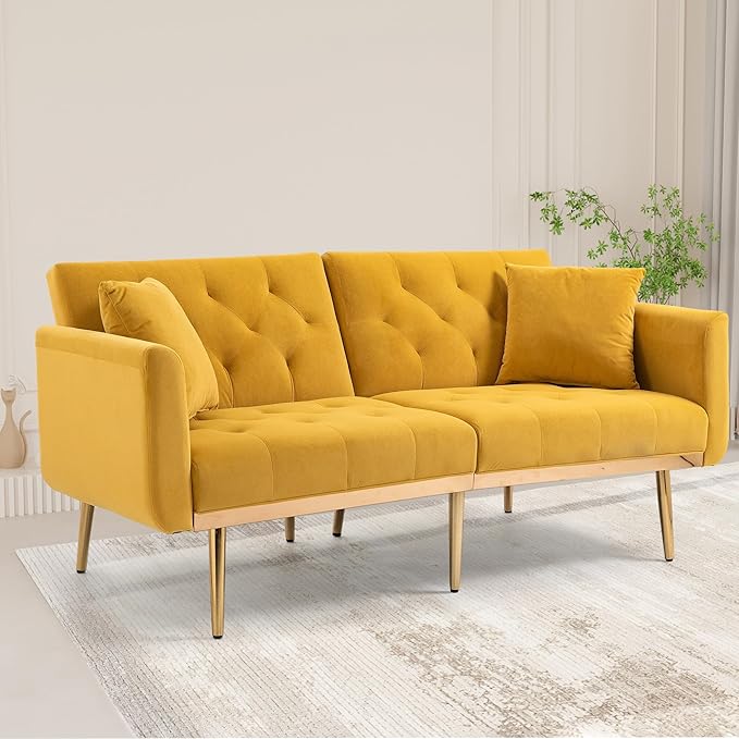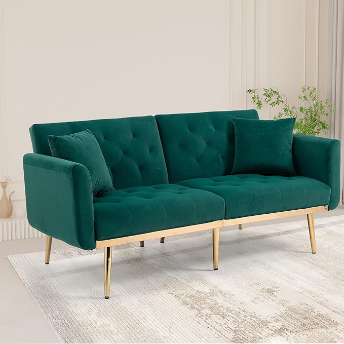 Mid-Century Modern Velvet Loveseat, Petite Accent Sofa Couch with 7 Gold Metal Legs
