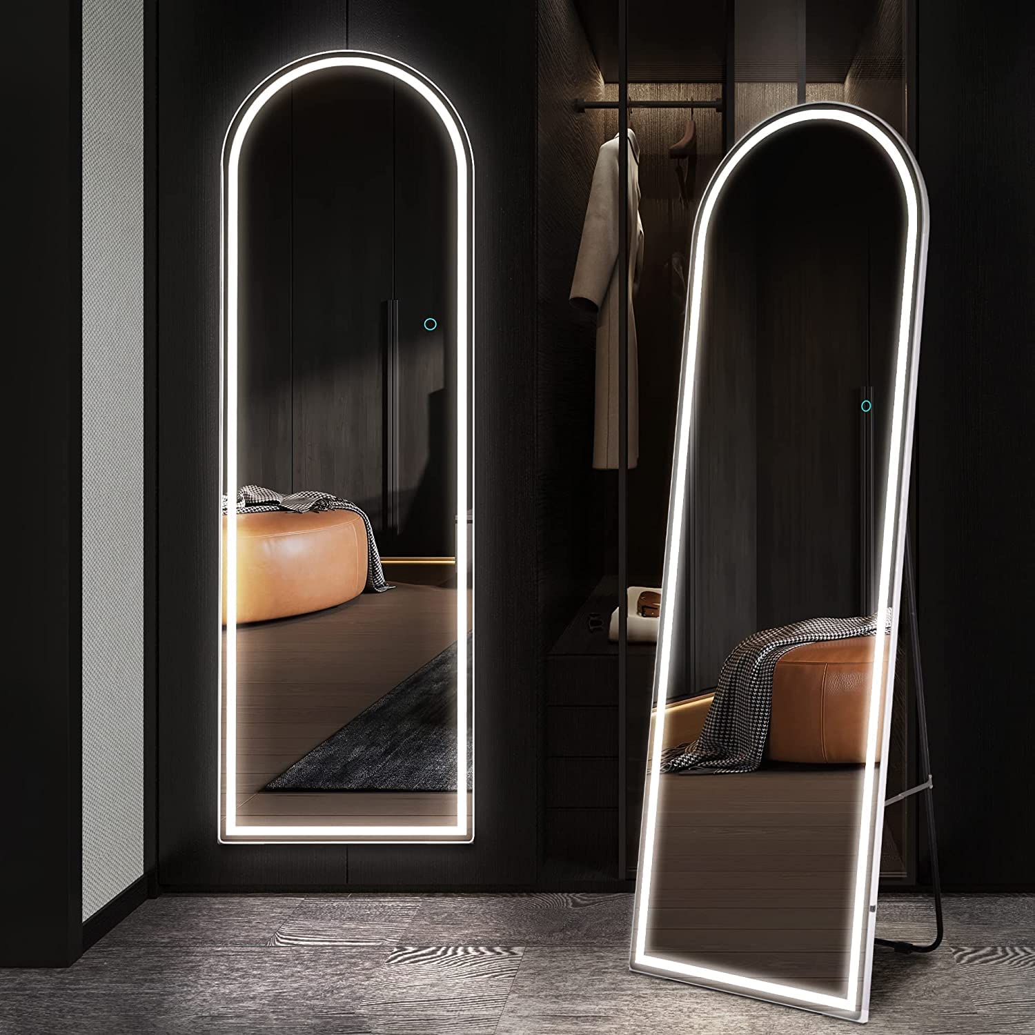63'' x 20' Full Length Mirror with LED Lights, Arched Floor Standing Mirror, White