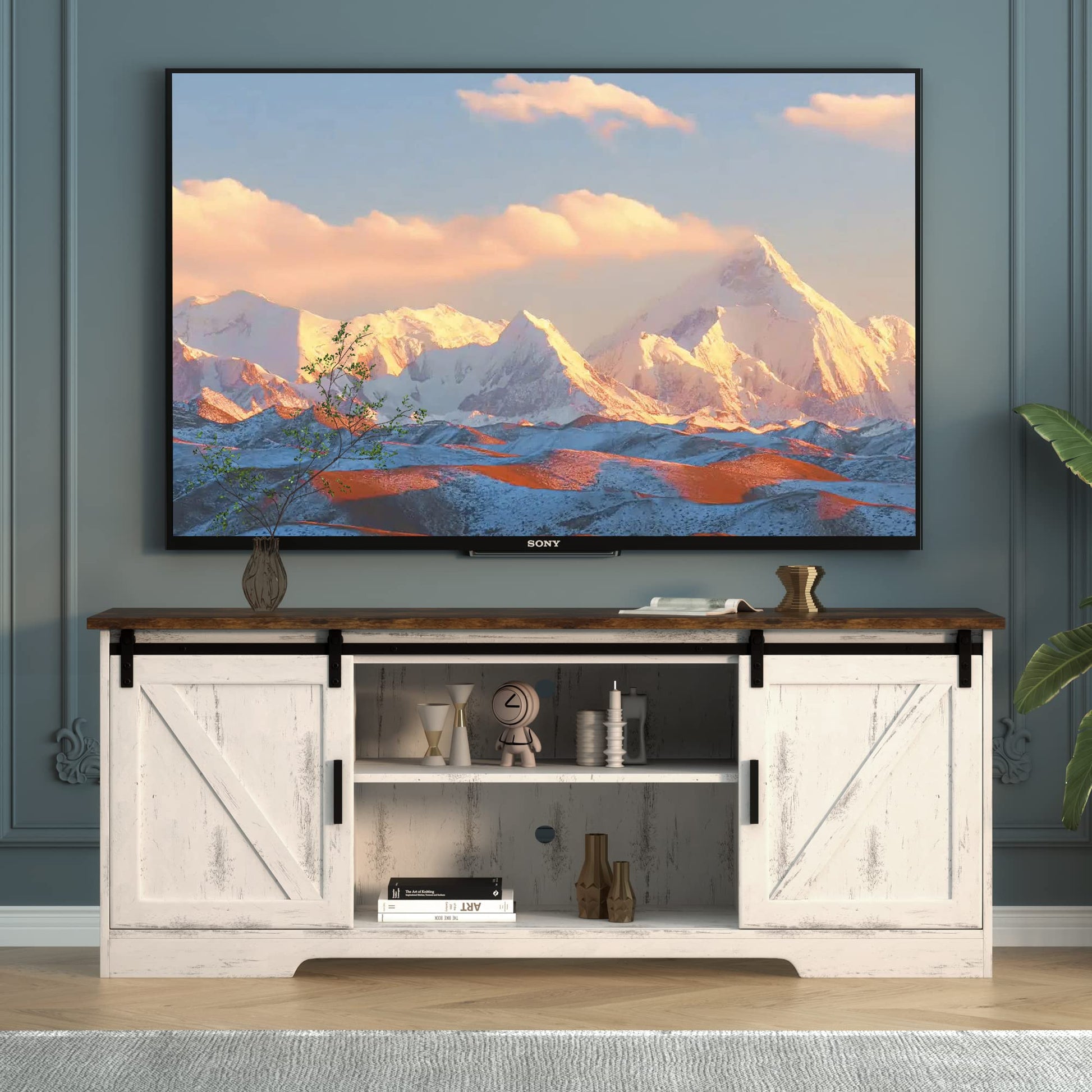 Farmhouse 65" TV Stand, Modern TV Stand White, Entertainment Center