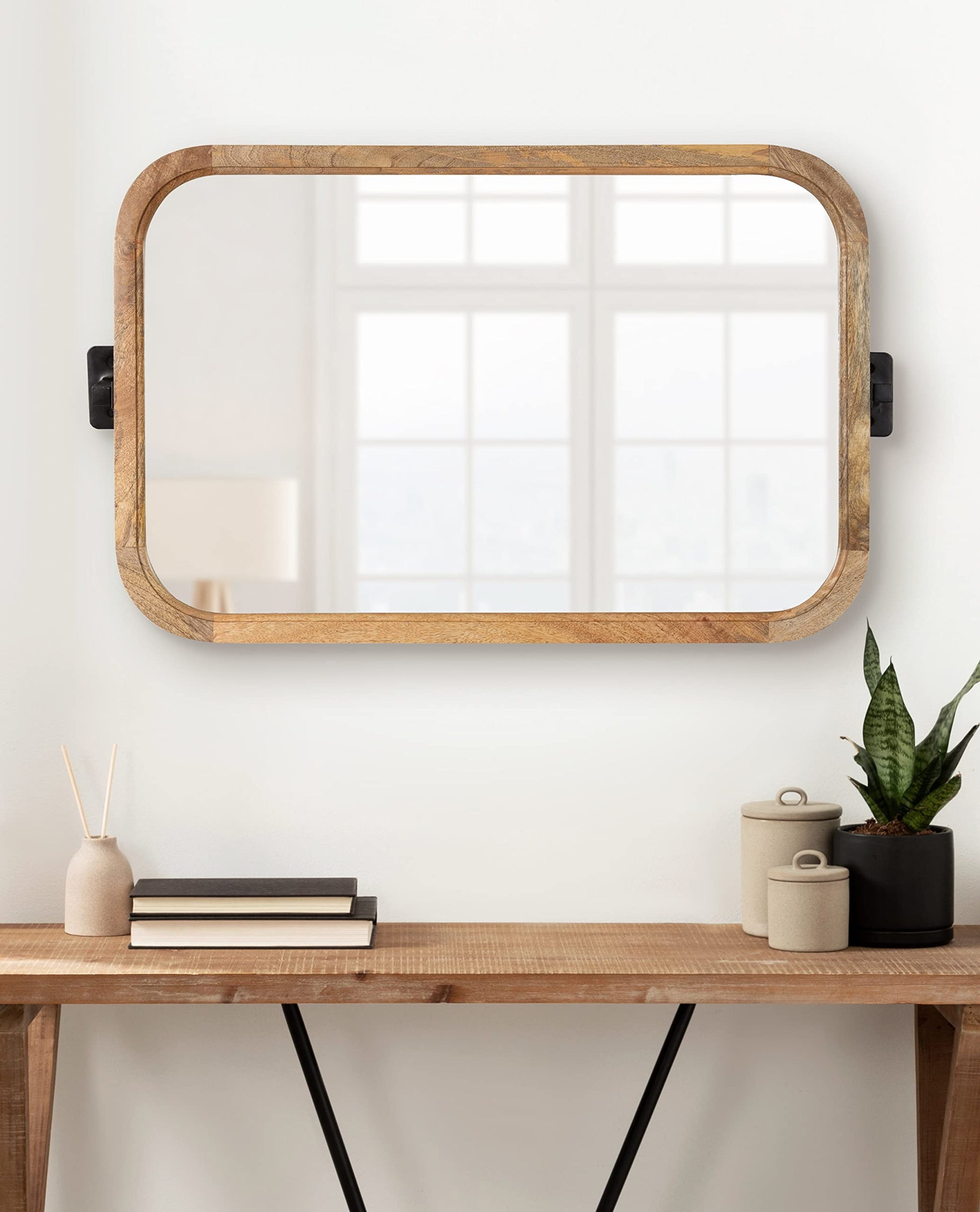 Hogan Wood Rounded Rectangle Pivot Mirror, 20 x 33, Natural Brown Wood