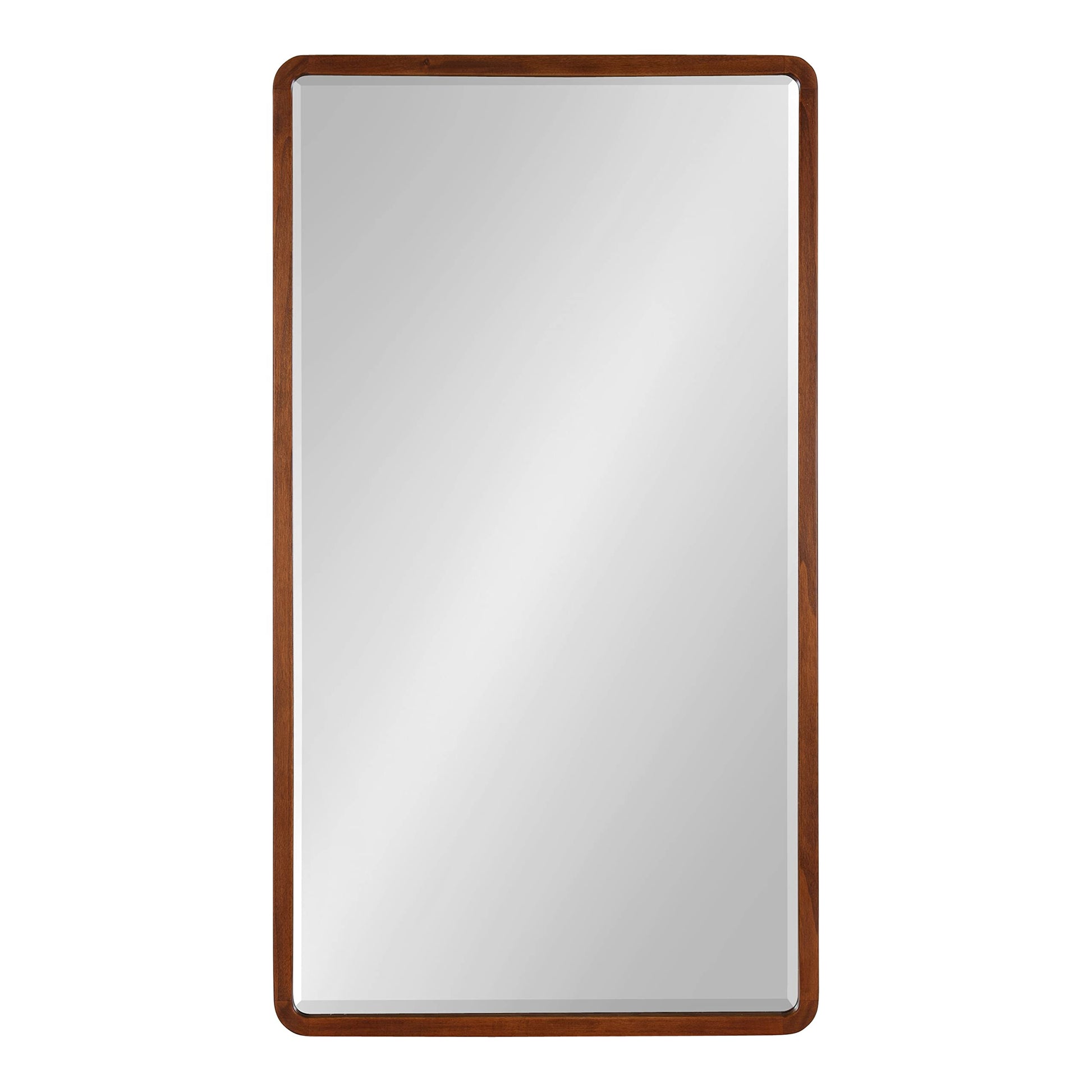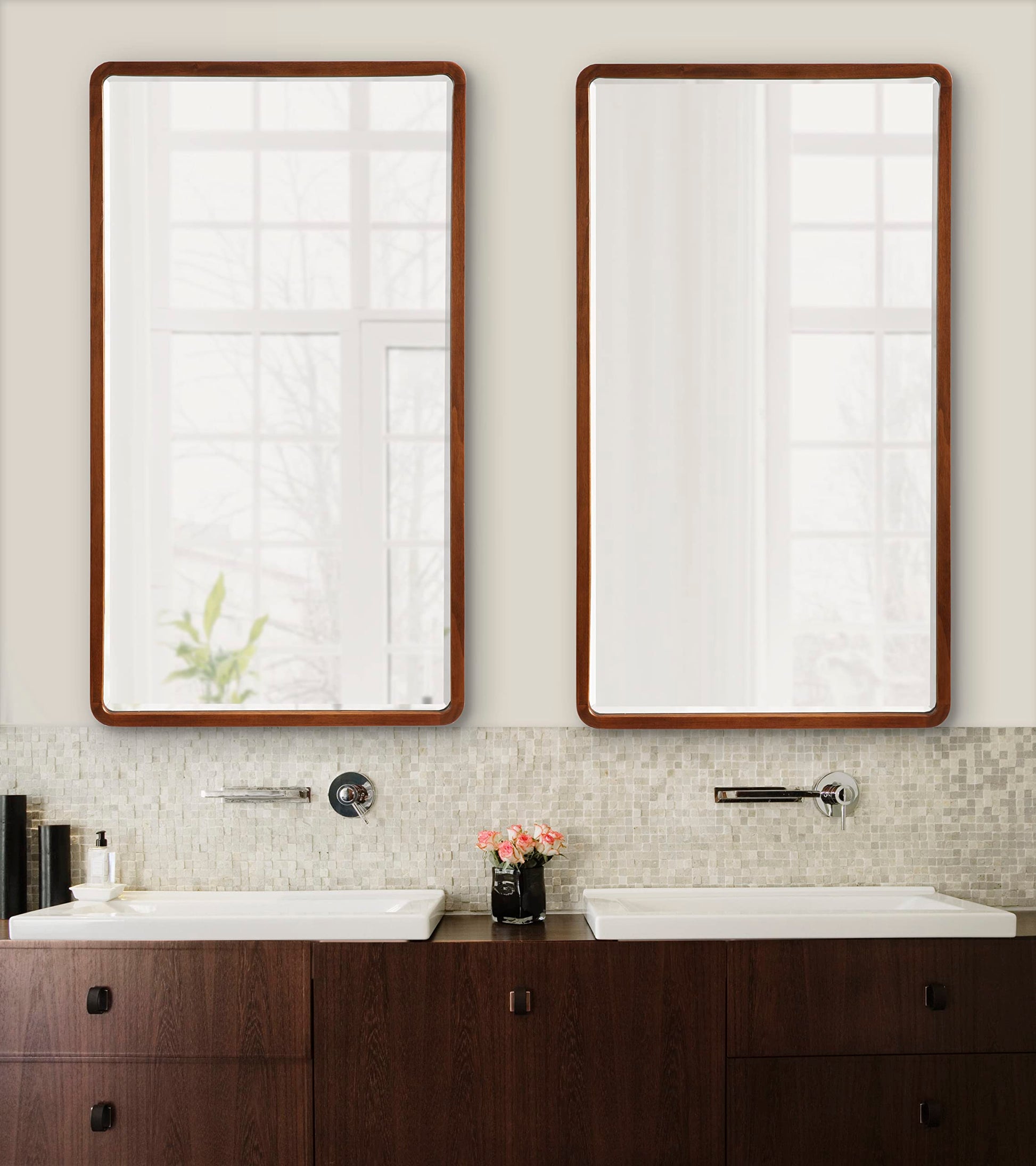 - Transitional Look: The McLean wall mirror takes inspiration from geometric forms, with a rounded rectangle shape and a transitional modern walnut finish