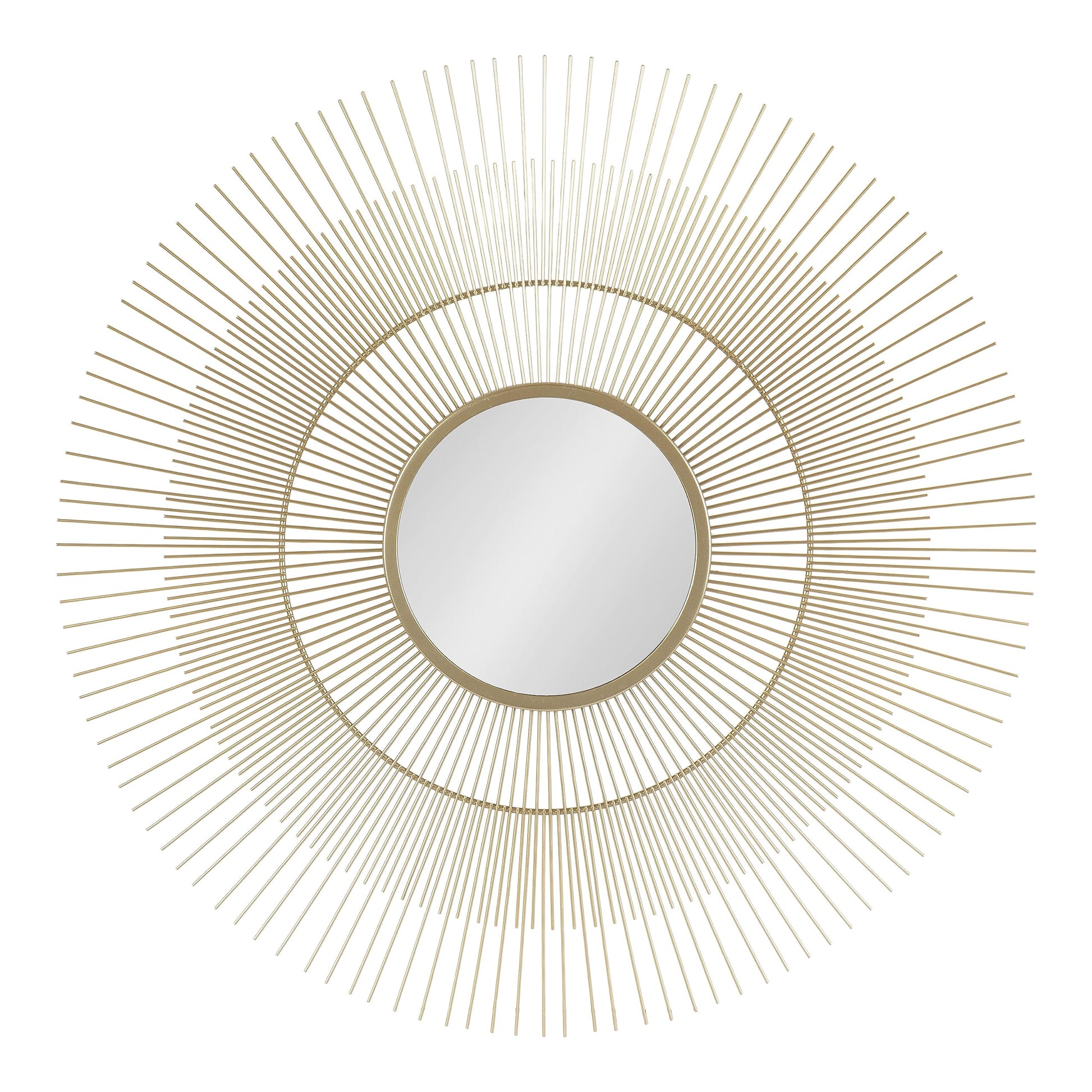 Quillet Mid-Century Round Decorative Wall Mirror, 26 Inch Diameter, Gold