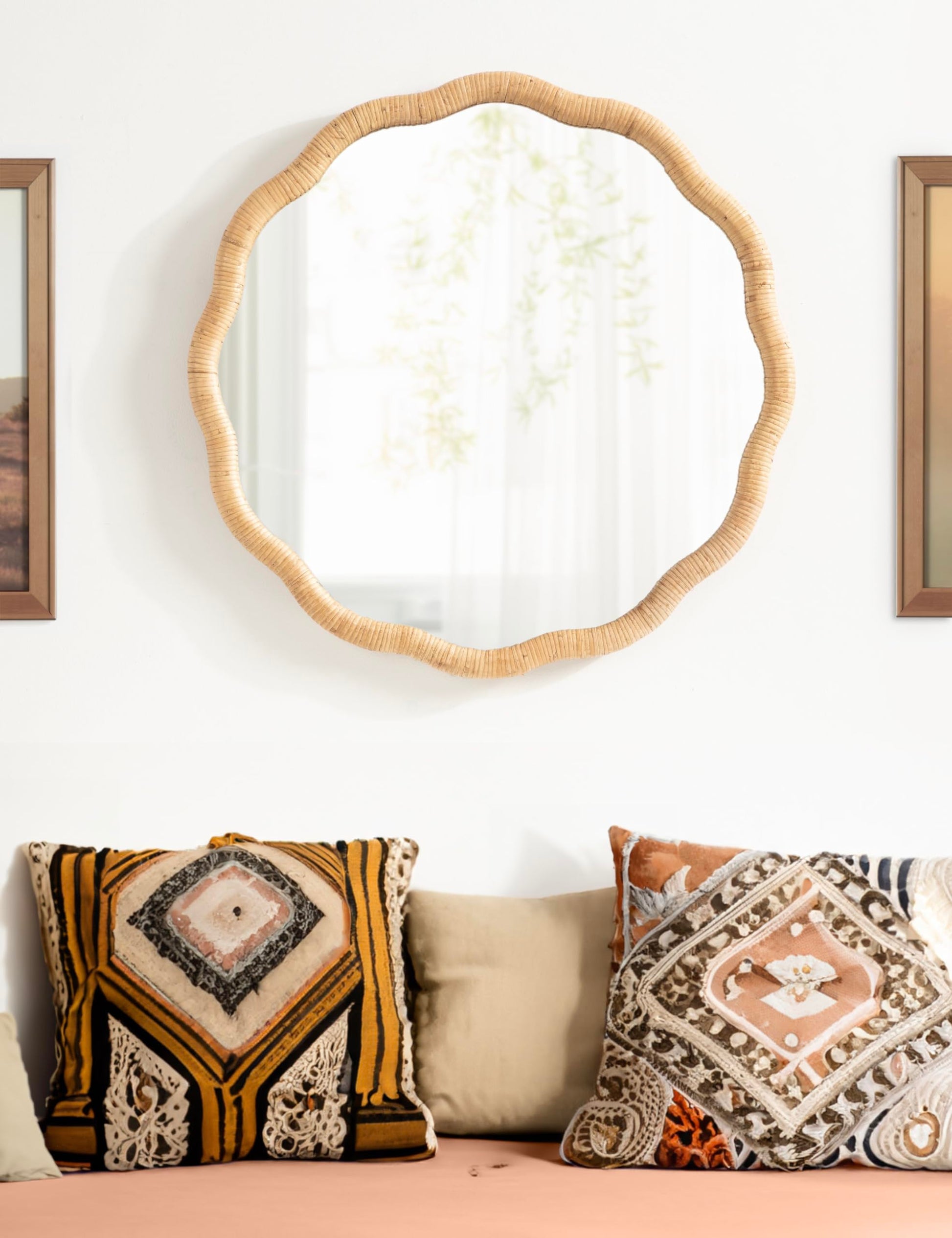 - Modern Mirror Design : The bohemian Rahfy mirror features a lovely round mirror surrounded by a rattan-wrapped frame with a textured, dimensional design