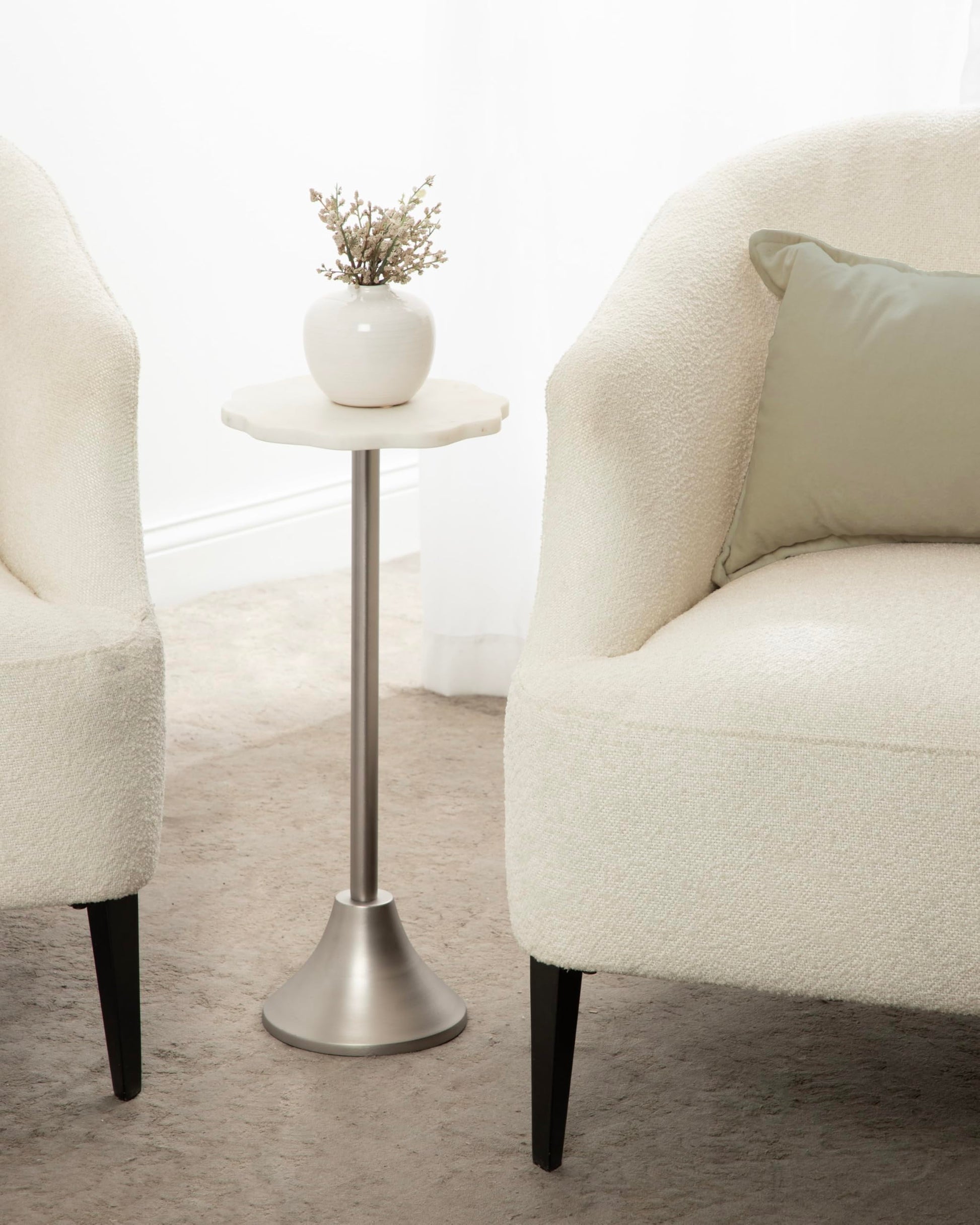 Sanzo Modern Pedestal Drink Table, 10 x 10 x 23, White Marble and Silver