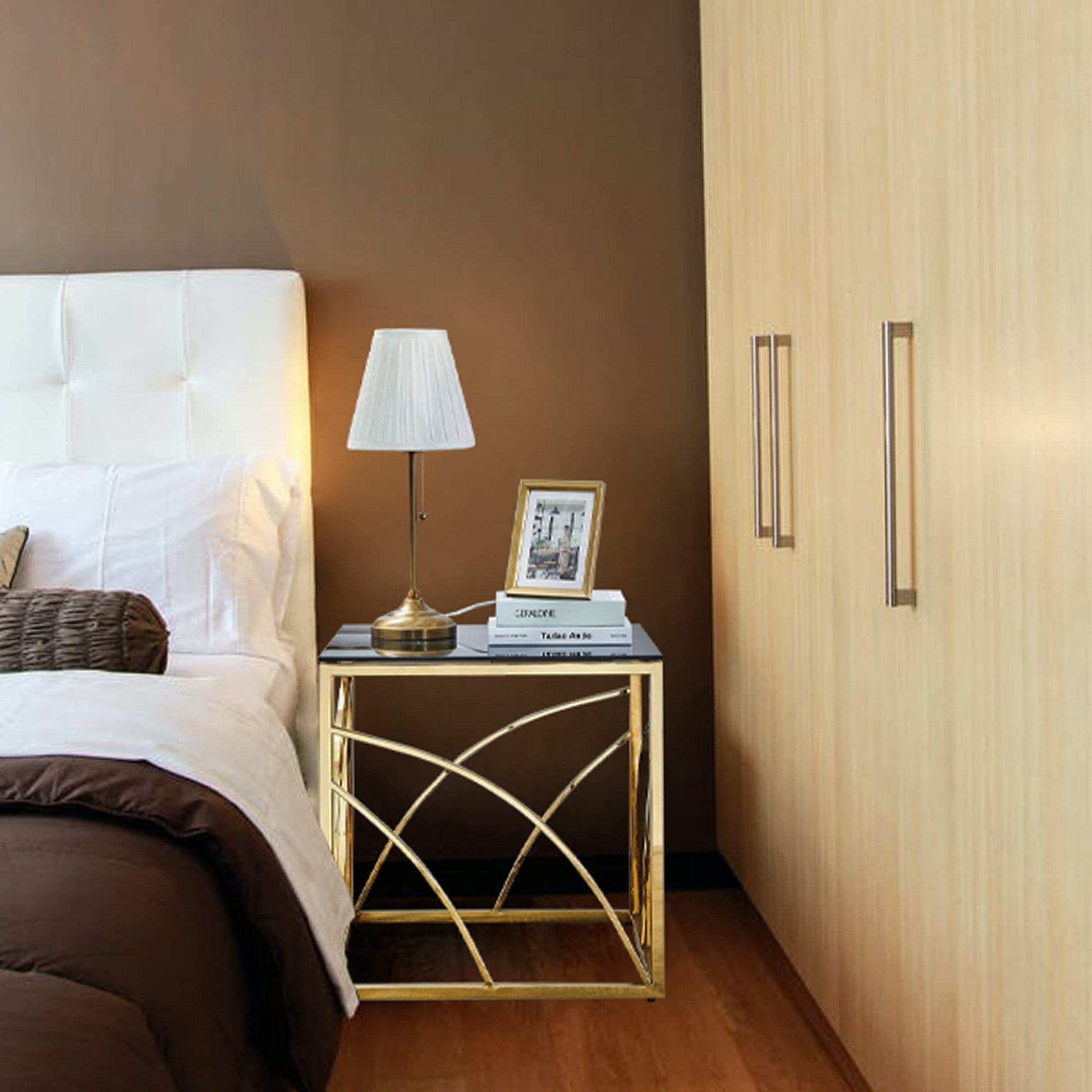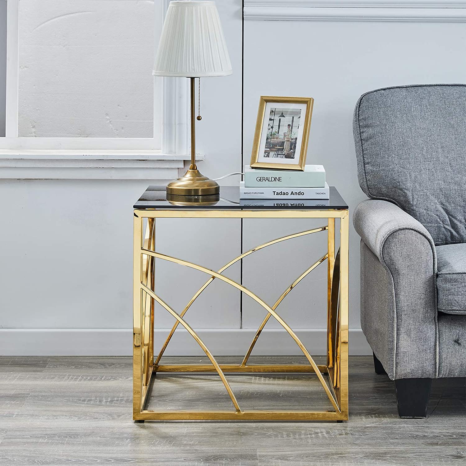 Accent Glass End Table Gold- Set of 1 Modern Square 21.45" Small Coffee Table Tempered