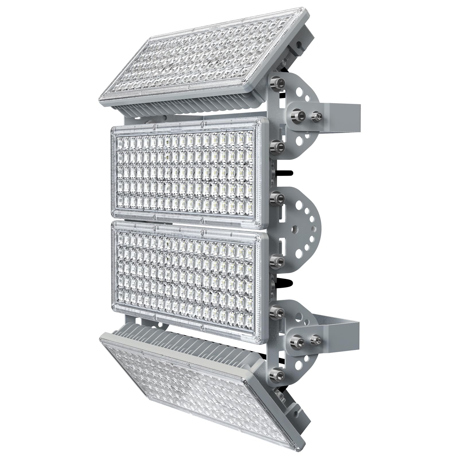 - 400W LED stadium light consists of four 100W super bright floodlights, with a maximum brightness of 56000 lumens, making it even brighter than a 5000W halogen lamp