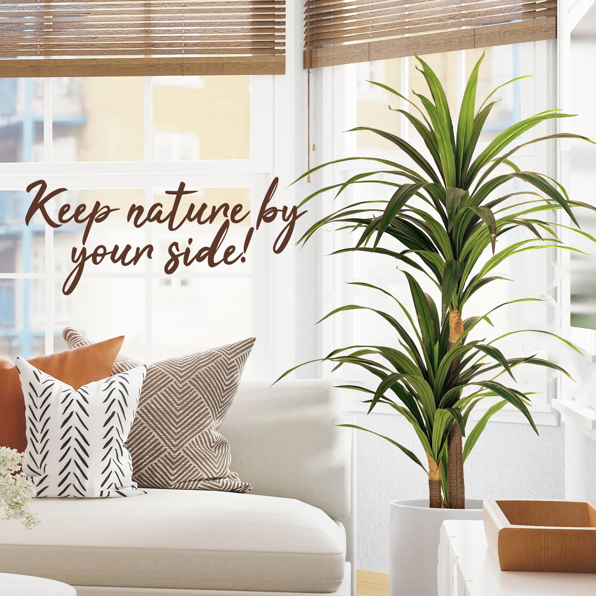 - Lifelike Trunks The artificial dracaena tree is composed of three lifelike trunks, complemented by realistic leaves, making it an ideal decoration for both your home and office. It creates a tropical atmosphere in your living environment.