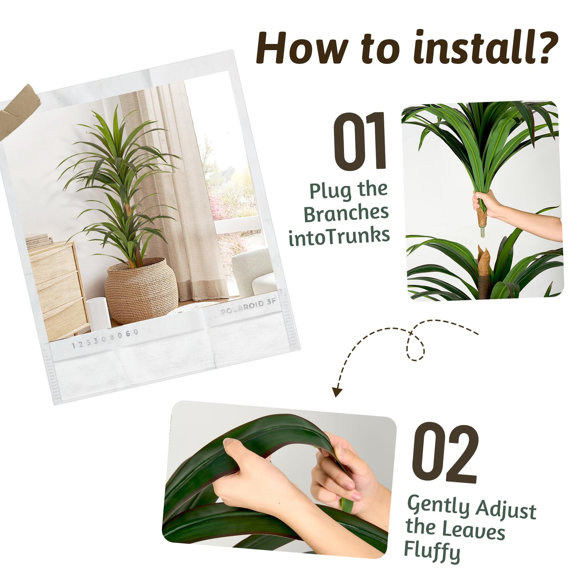 - Leaves Adjustable The faux yucca tree allow for easy adjustment to suit your preferences. Upon removal from the box, some reshaping may be required for optimal appearance. To ensure artificial floor faux tree quality, every batch will take out the same samples to check up before it leaved factory.