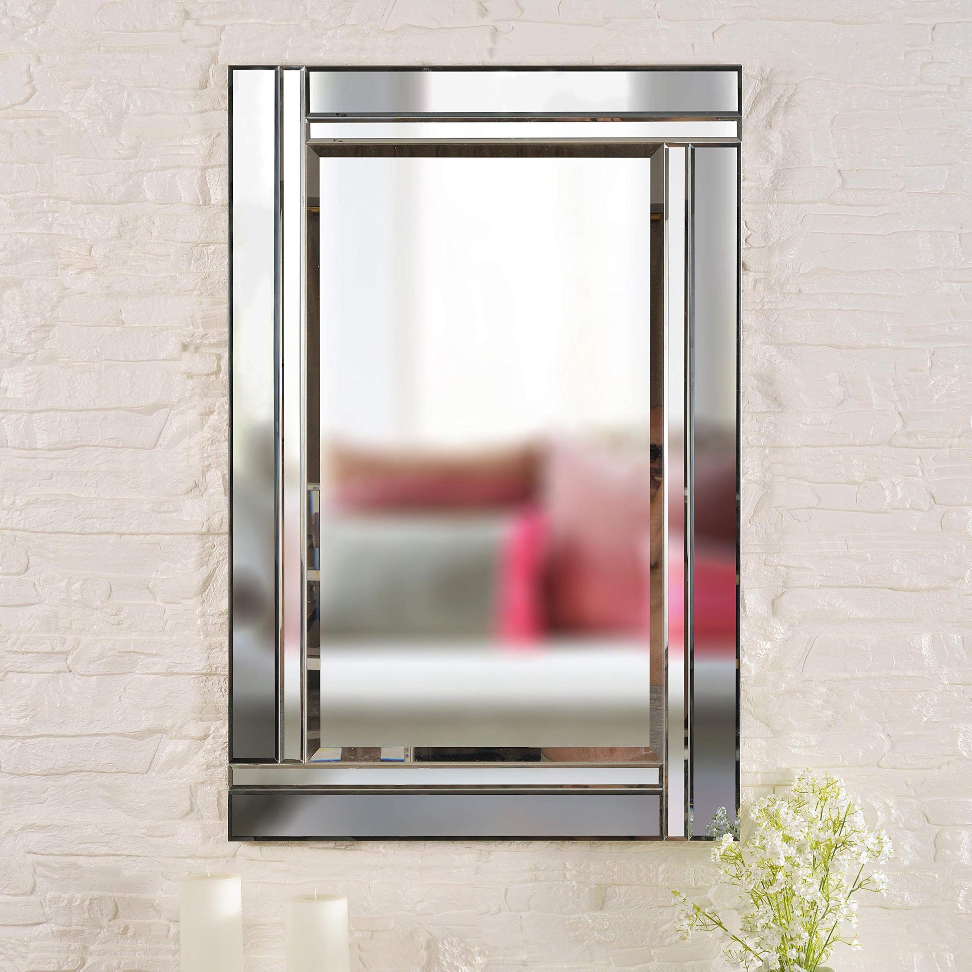 - SMOKED GRAY OMBRE FRAME: Each section of the mirrored frame of this contemporary wall mirror starts clear and slowly fades into a bold smoked gray ombre, adding urban style to your modern living space. Ideal for any contemporary, urban, modern, or minimalist decor, this beveled wall mirror serves as the perfect finishing touch in any living room, entryway or master bathroom.
