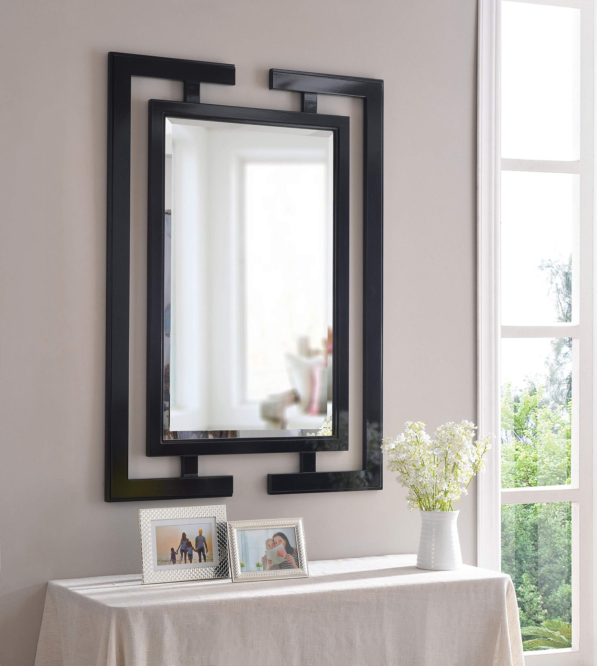 - ASIAN-INSPIRED GEOMETRIC DESIGN: Simple and clean-lined, the geometric appearance of this Asian-inspired wall mirror will bring contemporary Zen and natural lighting to your living room, bedroom, dining room and more. A glossy black finish accentuates the open design of the angular frame, enclosing a generously-sized rectangular beveled mirror that’s perfectly suited for your modern, contemporary, minimalist, geometric, or Asian-themed home décor.