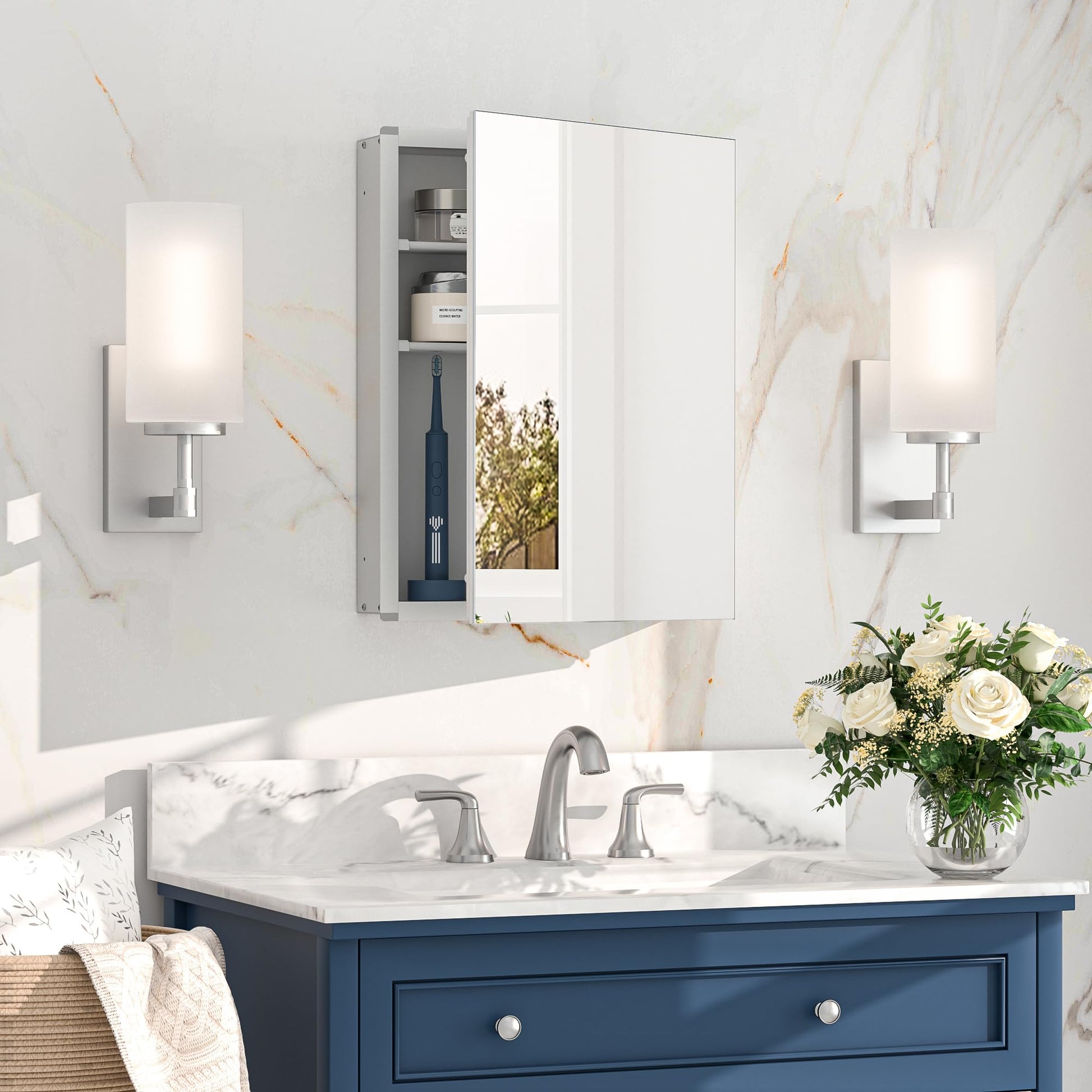 Small Medicine Cabinet 14 x 18 Inch, Assembly Required, Silver Bathroom Medicine Cabinet