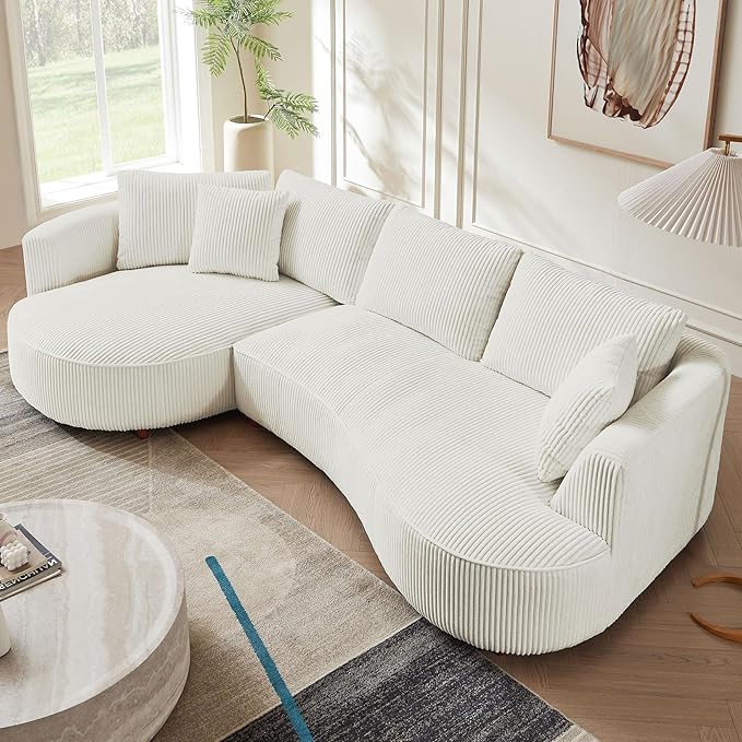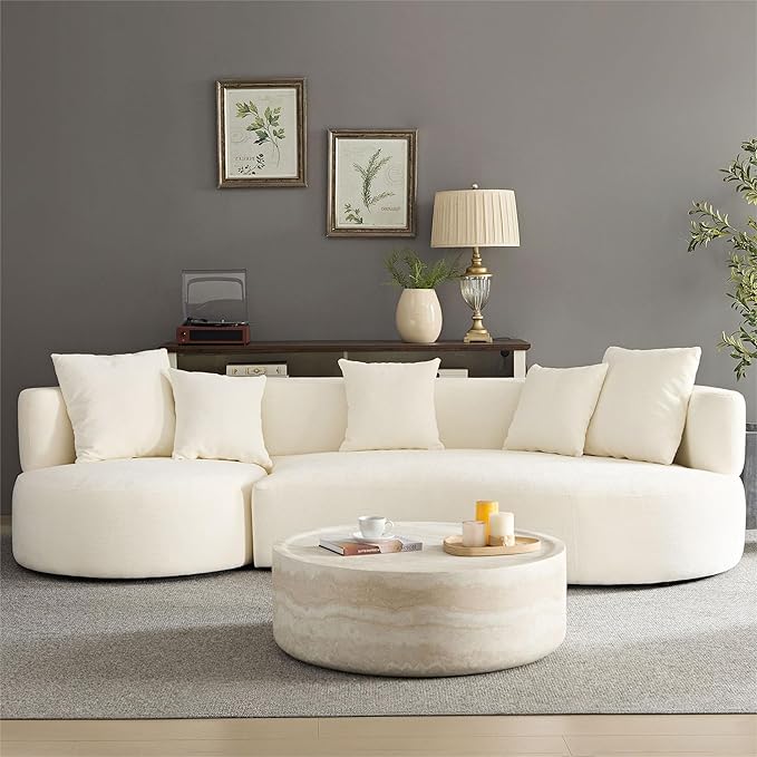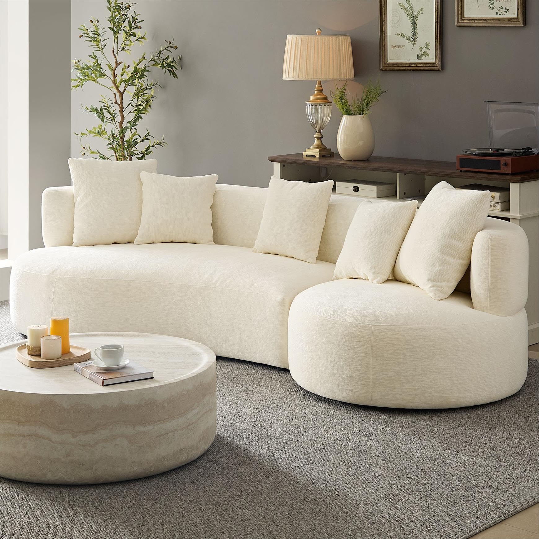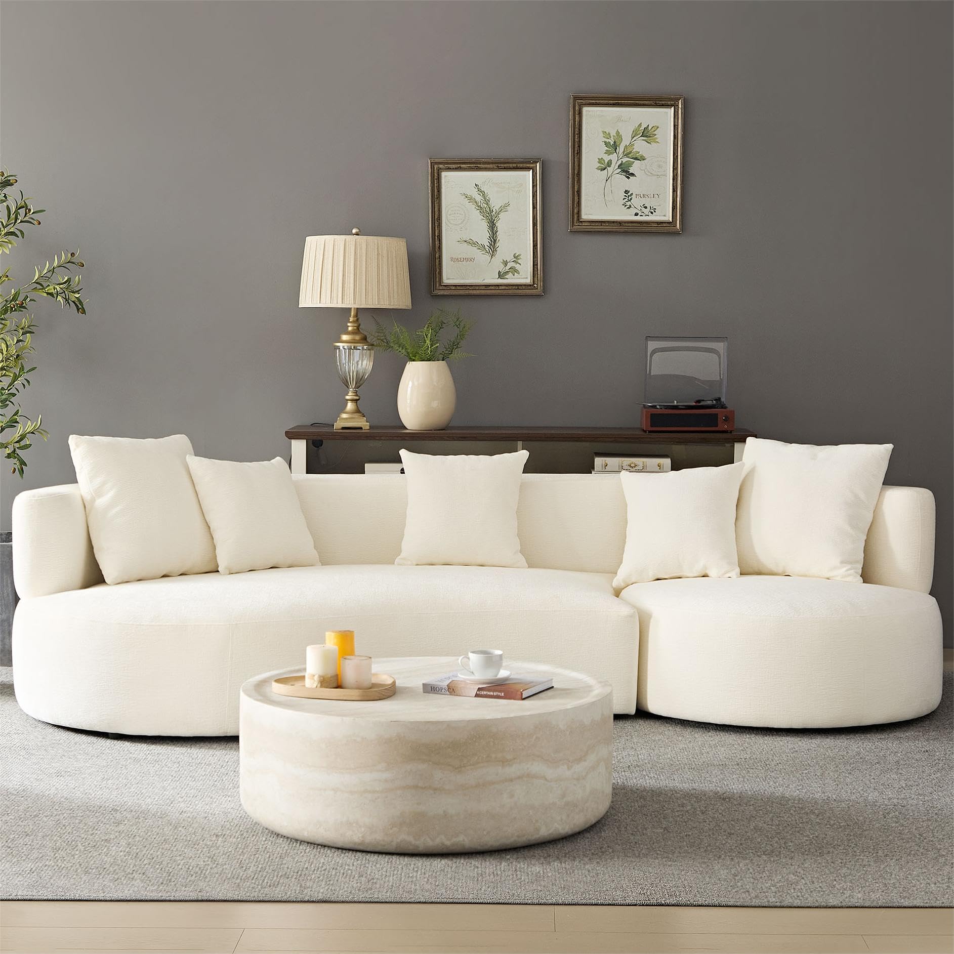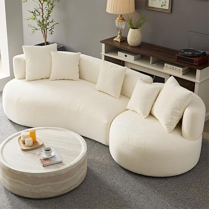 110.23" Curved Sofa with 360 Swivel Arm Chair - Modern Upholstery Boucle 3 Seat Couch