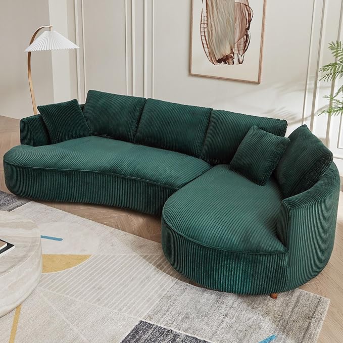 - It’s definitely a statement piece. You will also love the detached “loveseat” which is deeper than expected and we love that it has a 360 turn. You can kept it separate, but it can also be an add on to the sofa. Your will also love the curved structure of the sofa that adds an elevated look but adds additional space to the room
