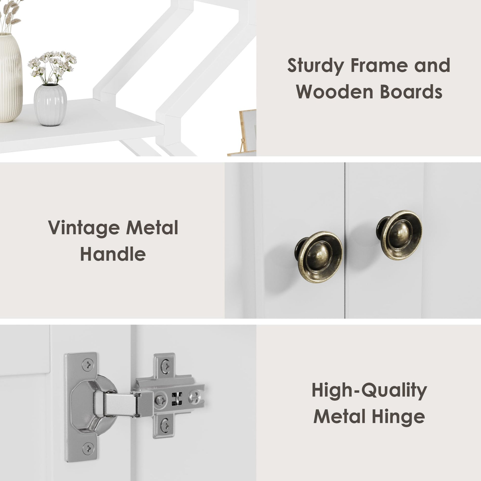 - Bookshelf with Storage Cabinets: The bottom of the bookshelf is equipped with 4 storage cabinets with doors and 2 adjustable shelves. The shelf can be assembled in any storage cabinet as needed to provide more storage space for toys, books, and other small items. The vintage metal handles add a touch of sophistication to the bookshelf. This is a versatile bookshelf that combines fashion and practicality