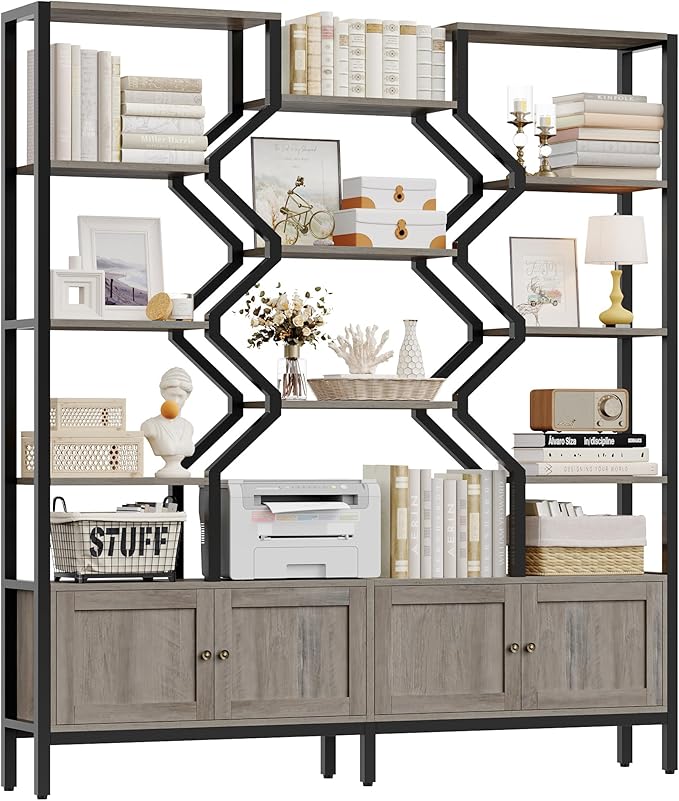 - 5-Tier Large Storage Bookshelf: The Bookcase has 14 open display shelves and 4 storage cabinets to maximize vertical storage space and display your books, potted plants, photo frames, crafts, and collectibles. The storage cabinets with doors provide a closed space to store household items to prevent dust. This etagere bookshelf adds a unique and interesting element to your life