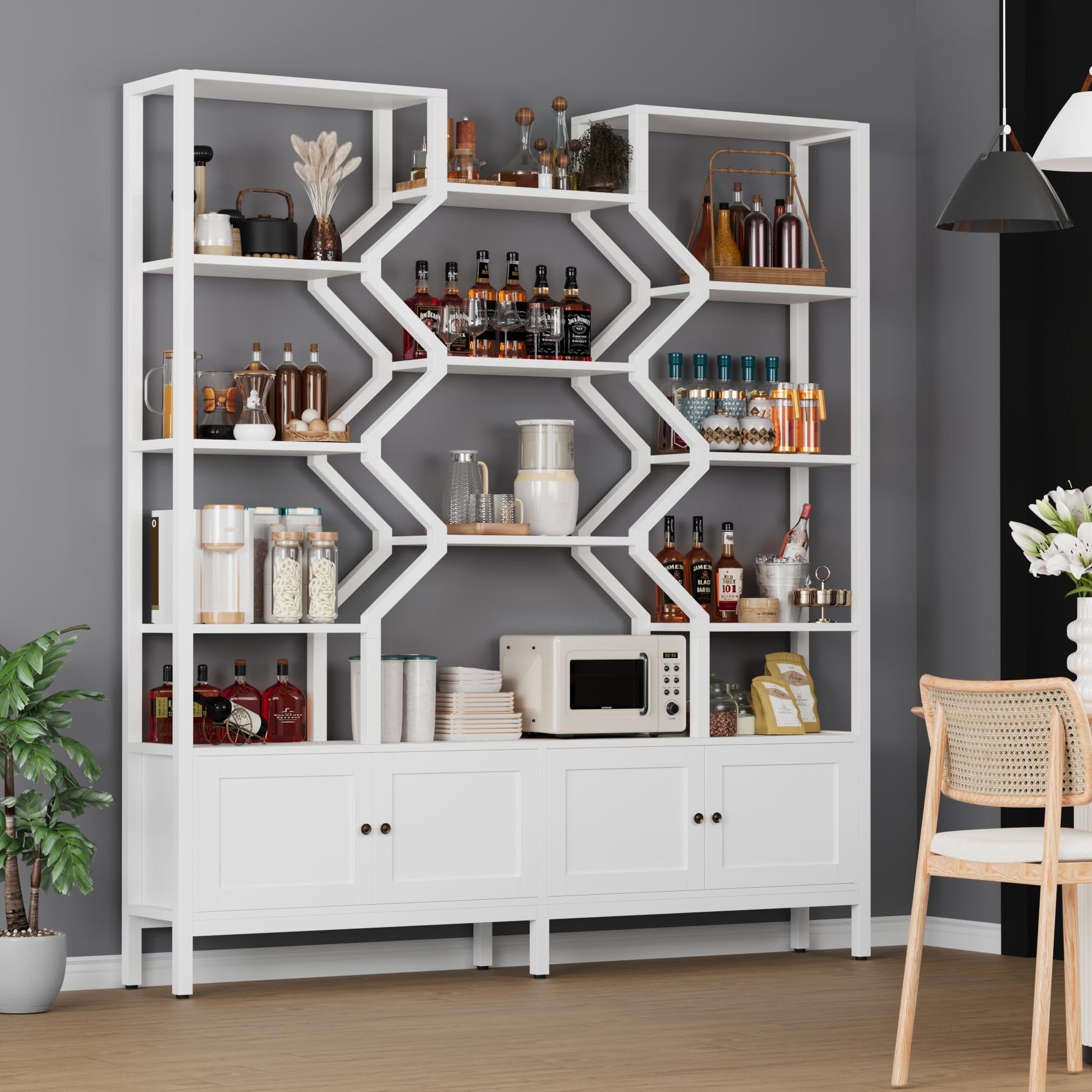 l 5-Tier Bookshelf with 4 Large Storage Cabinet, 74.2" W x 76.5" H Etagere Bookcase 14 Open Display Standing Shelves with Metal Frame for Living Room, Dining Room, White