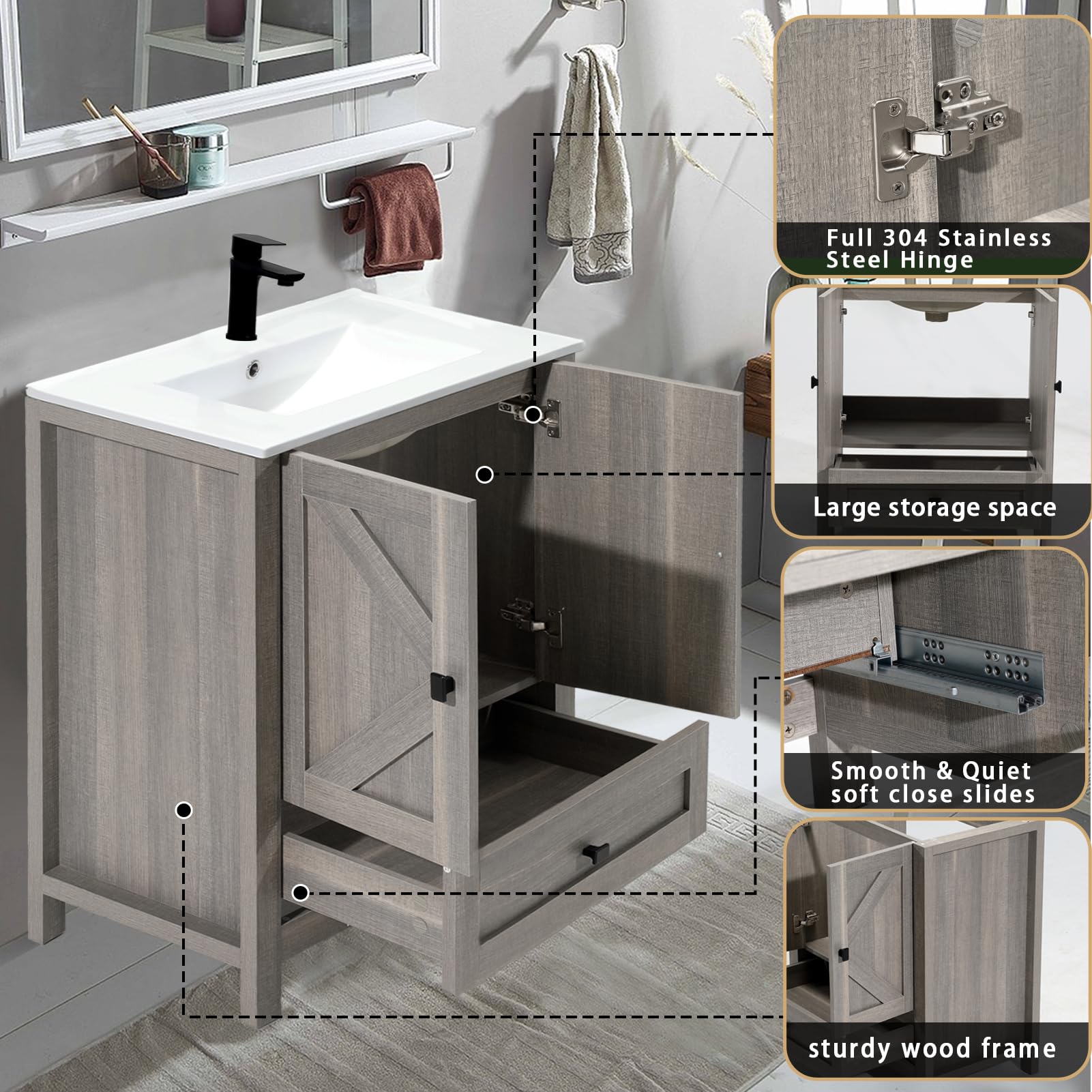 - 【30'' Bathroom Vanity with Premium Thick Board 】Different from those thin and flimsy vanities, our bathroom vanity is made of premium MDF board, which is thicker and has better hardness.
